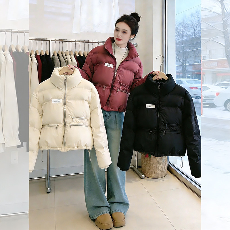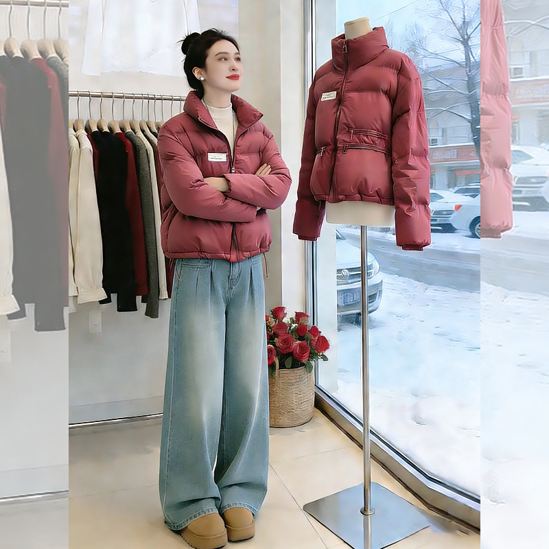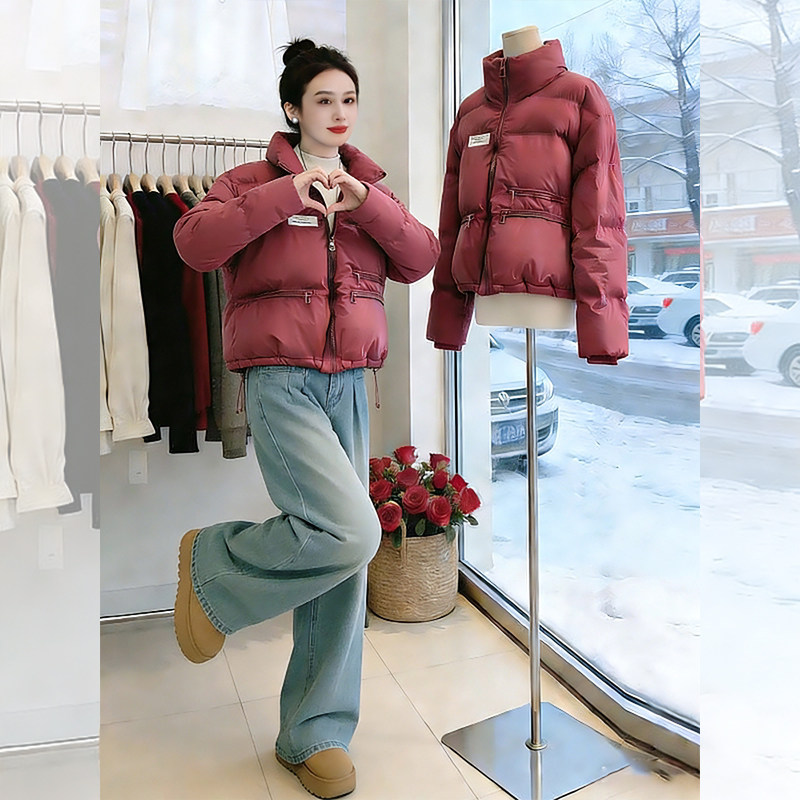 酒红色短款今年流行羽绒棉服女2026新款冬季爆款加厚棉服棉袄外套