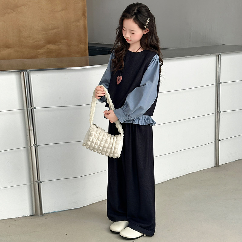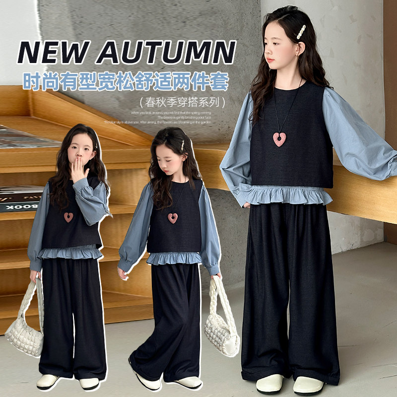女童春秋三件套2026新款时尚儿童套装洋气时髦中大童韩版马甲裤子