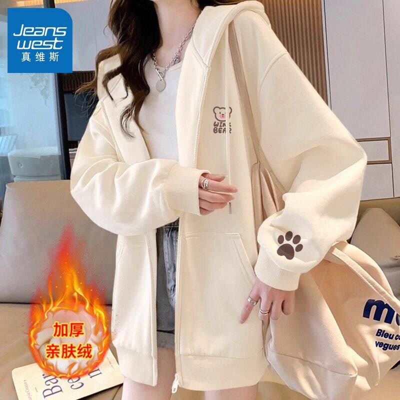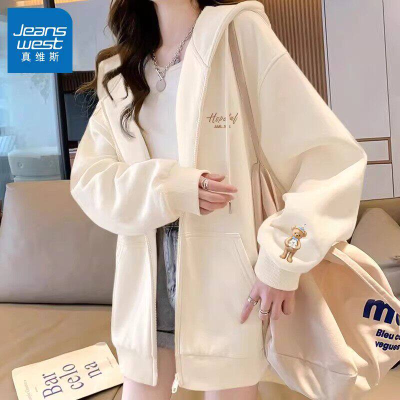 真维斯连帽开衫卫衣女款2026新款春季宽松初中生拉链春装薄款外套