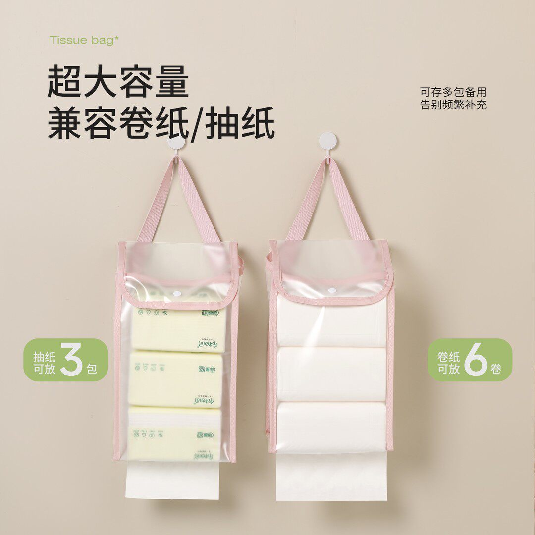 透明纸巾收纳袋壁挂式家用纸巾盒浴室卫生间纸抽盒防水防潮抽纸袋