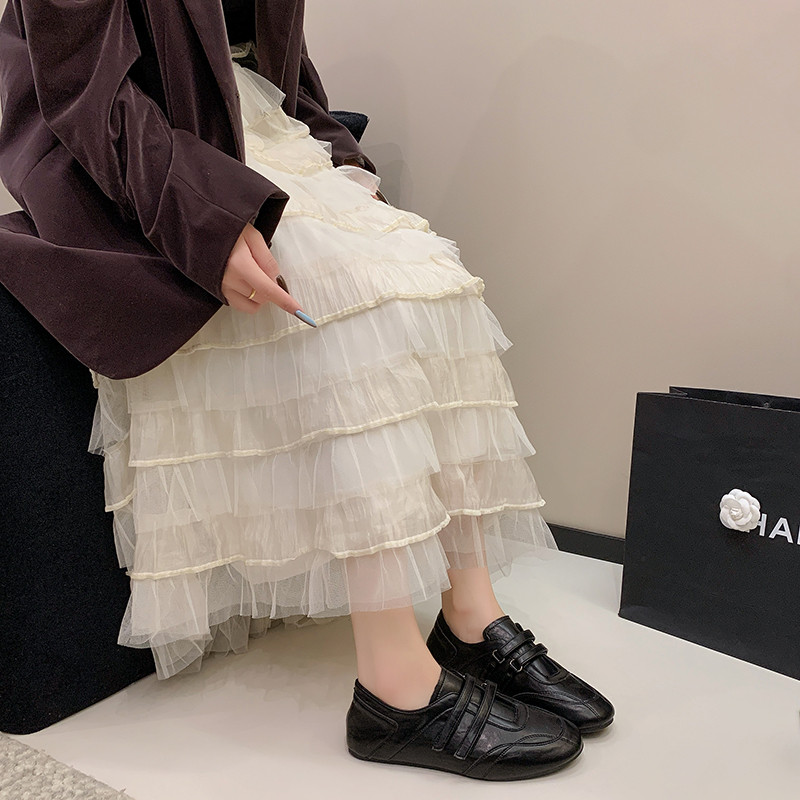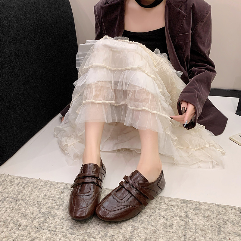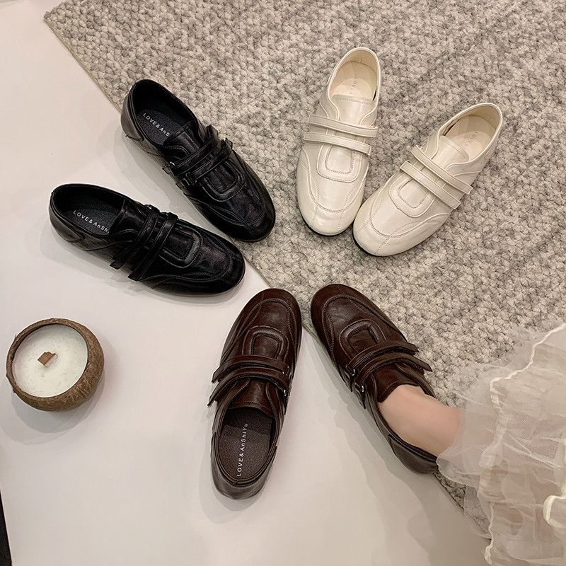 复古圆头黑色德训鞋子女2026春款魔术贴小皮鞋浅口平底休闲运动鞋