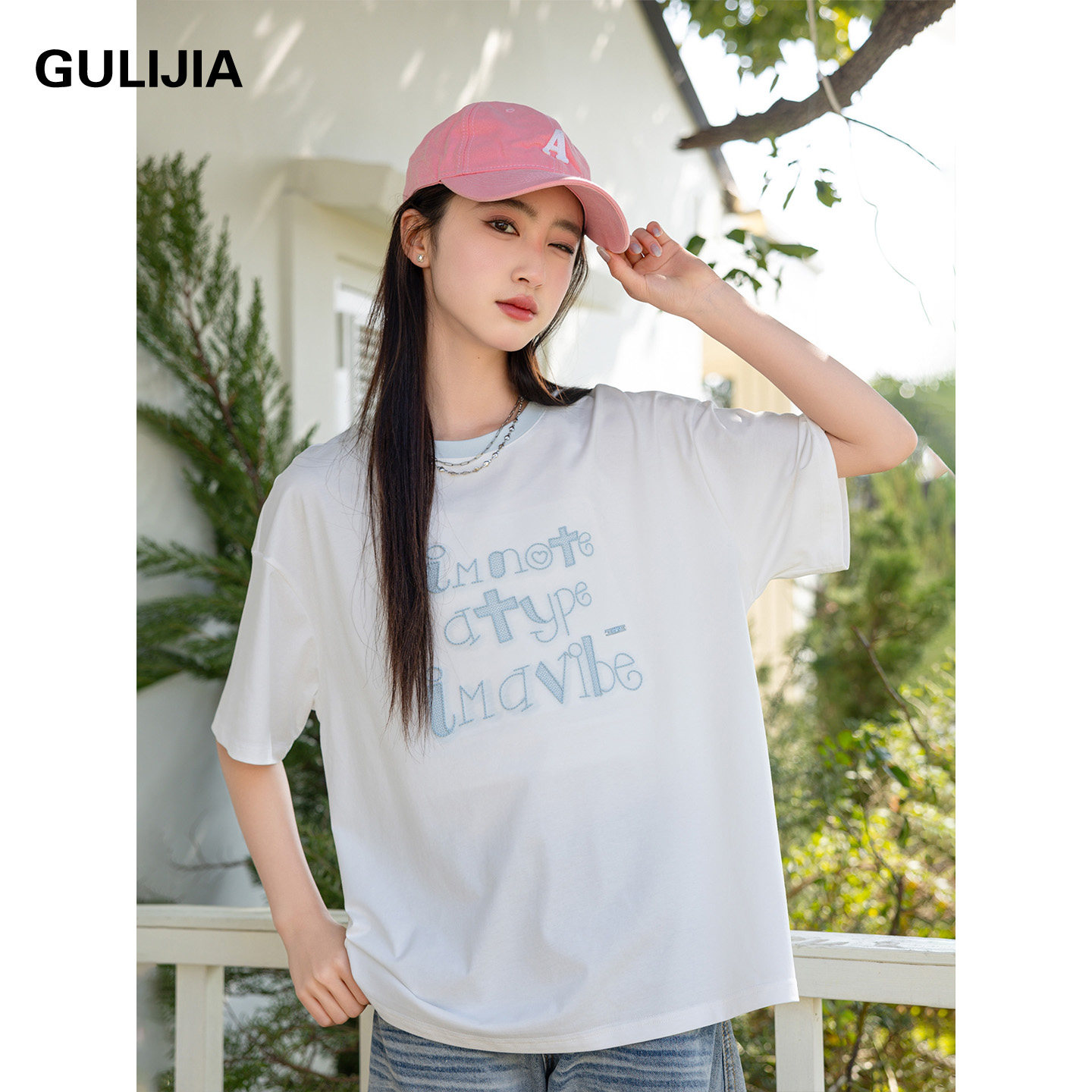 古力家夏装字母印花T恤女大童短袖宽松休闲白色初中生上衣体恤衫