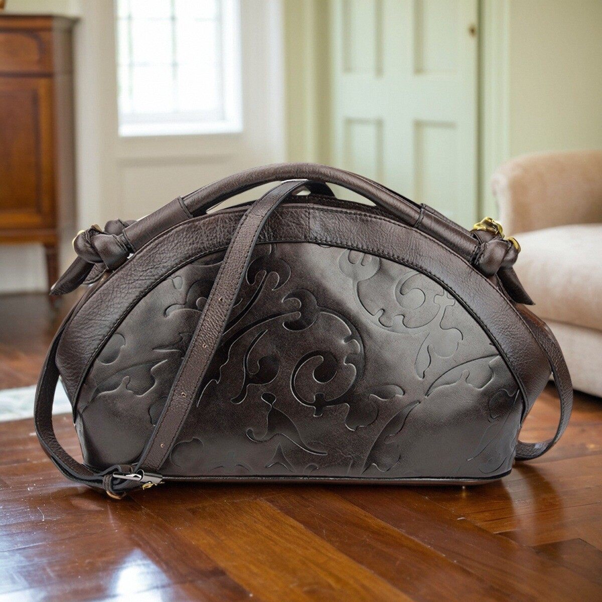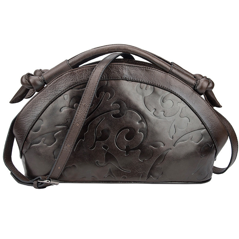 休闲复古手提包真皮女包头层牛皮单肩斜挎包时尚压花气质贝壳包潮