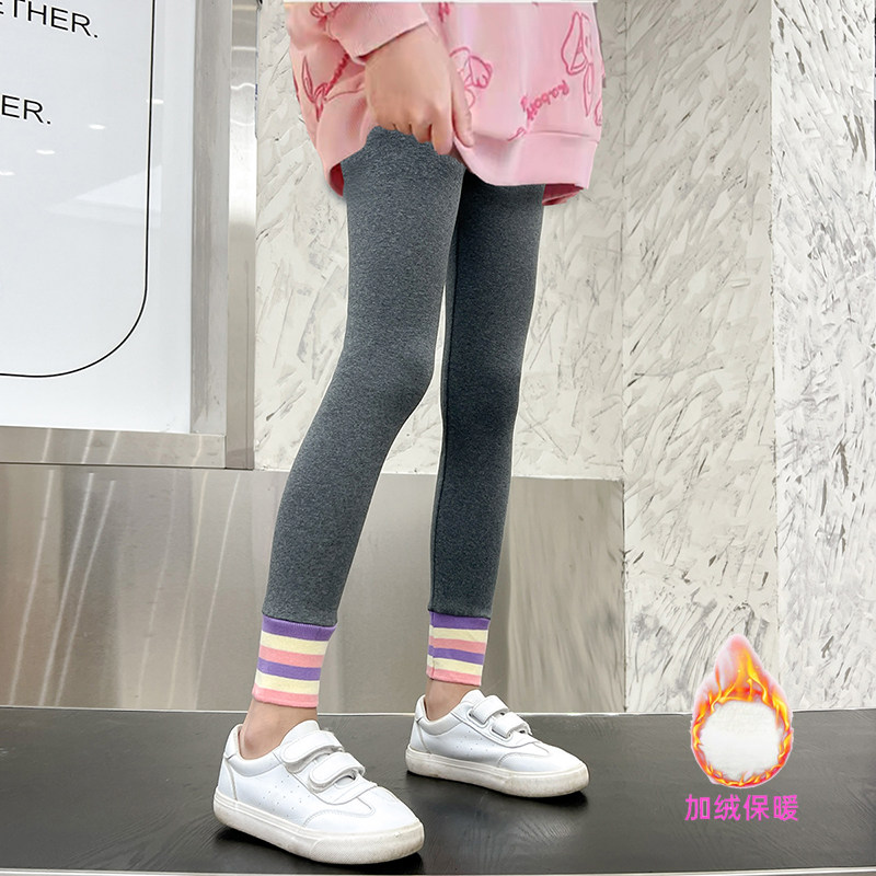女童打底裤秋冬加绒外穿洋气中大童秋装女宝宝纯棉加厚儿童长裤子