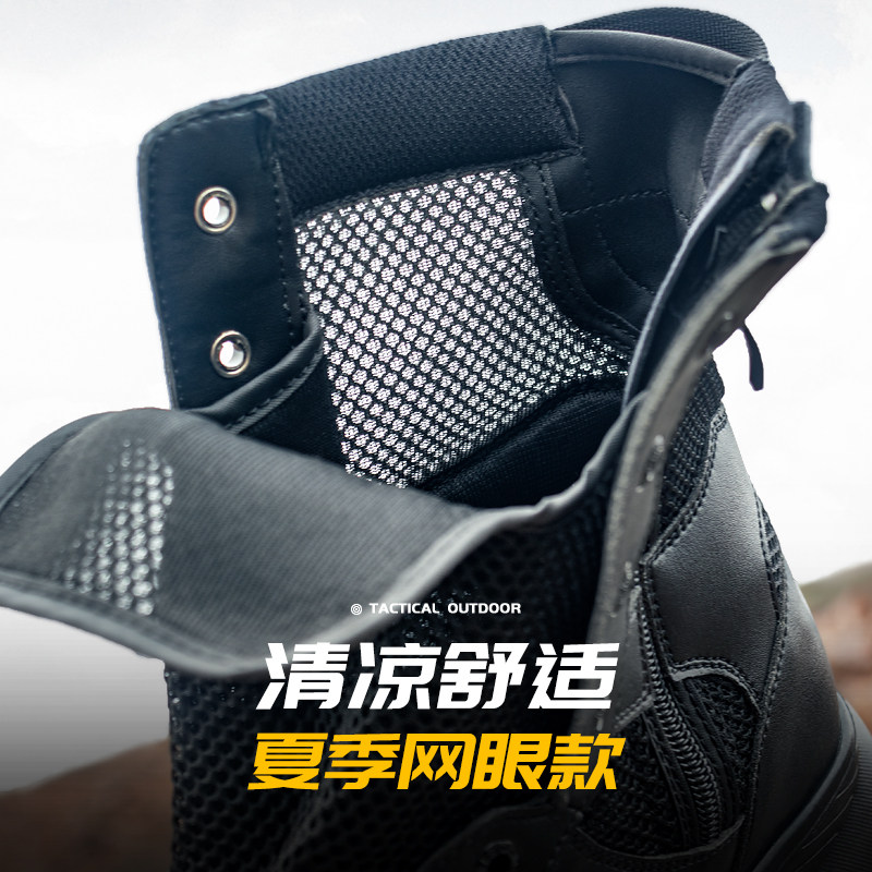 网眼作战靴超轻作训靴子夏季透气减震情侣拉链保安鞋户外战术靴子