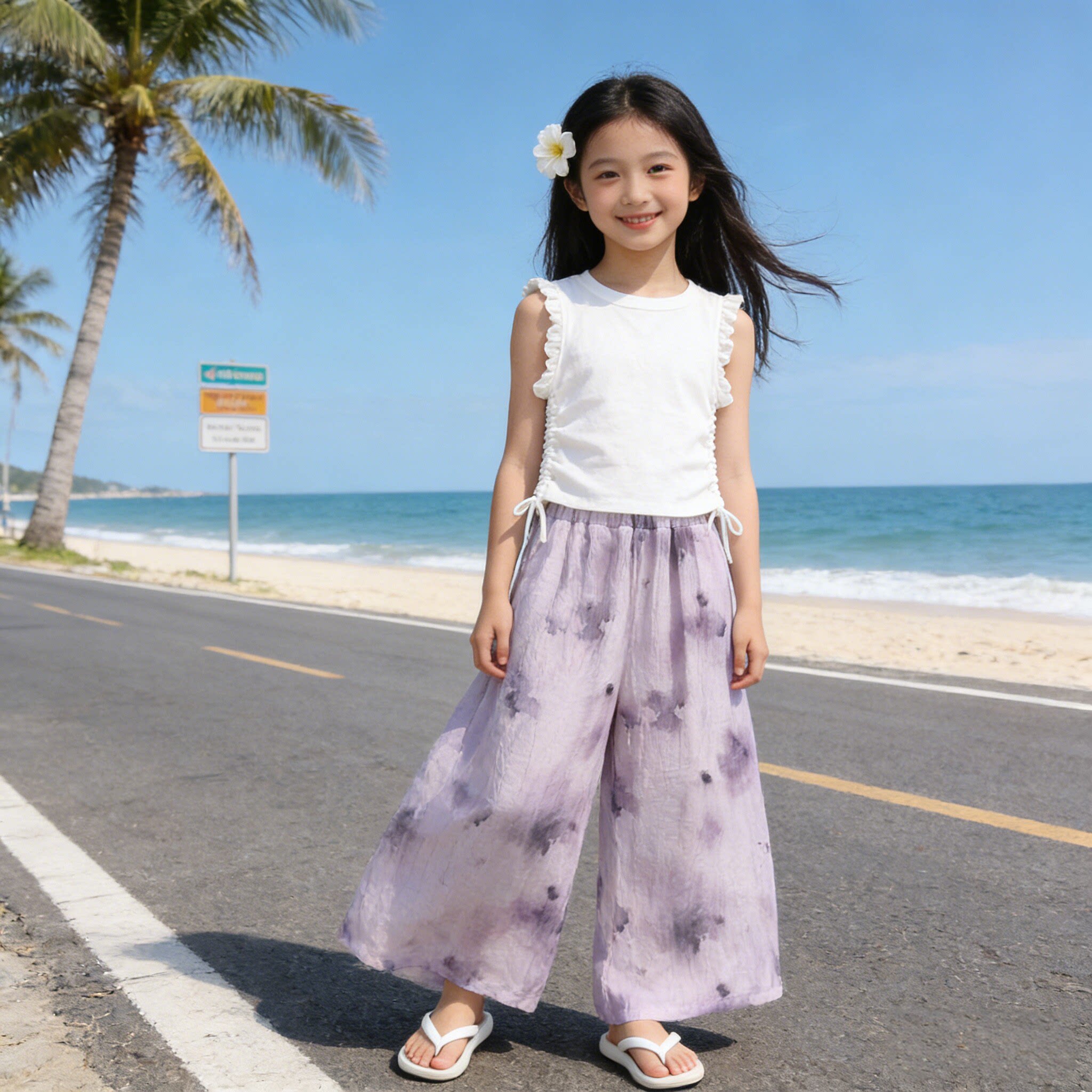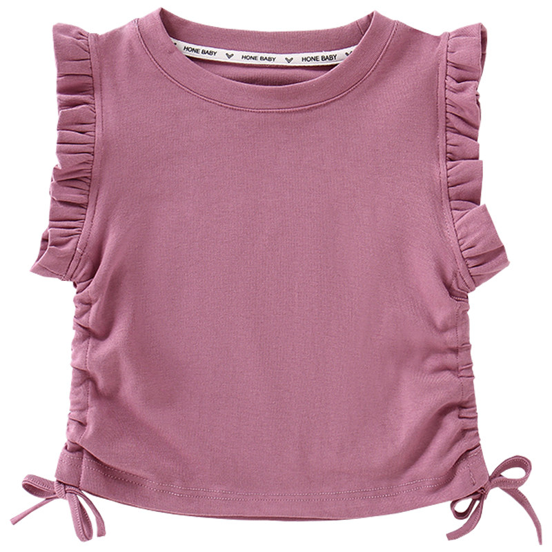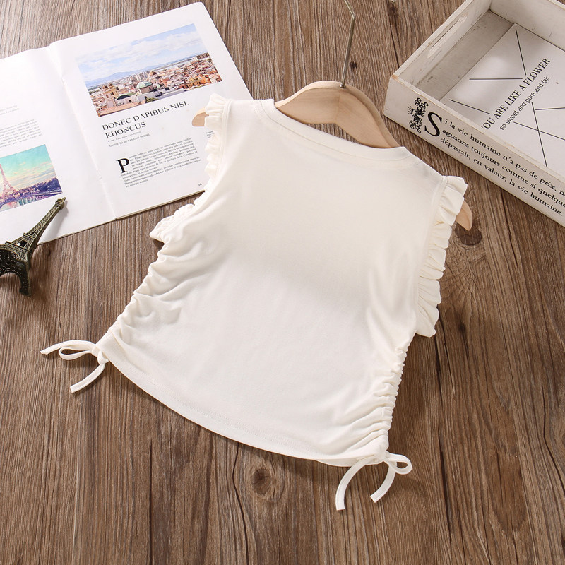 女童T恤夏季薄款背心外穿纯棉洋气小女孩短款短袖白色小飞袖上衣