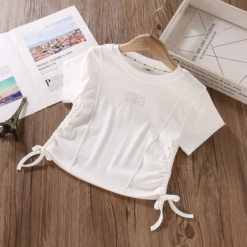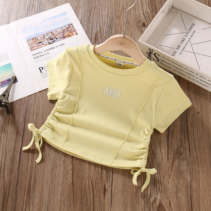 女童薄款短款上衣夏季洋气韩版高腰时尚半袖纯棉中大儿童短袖T恤