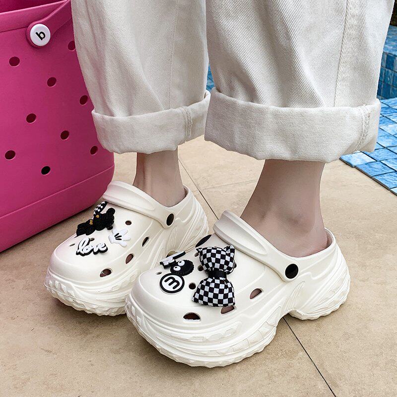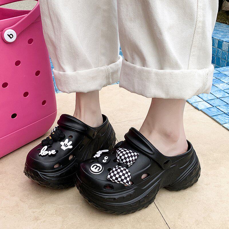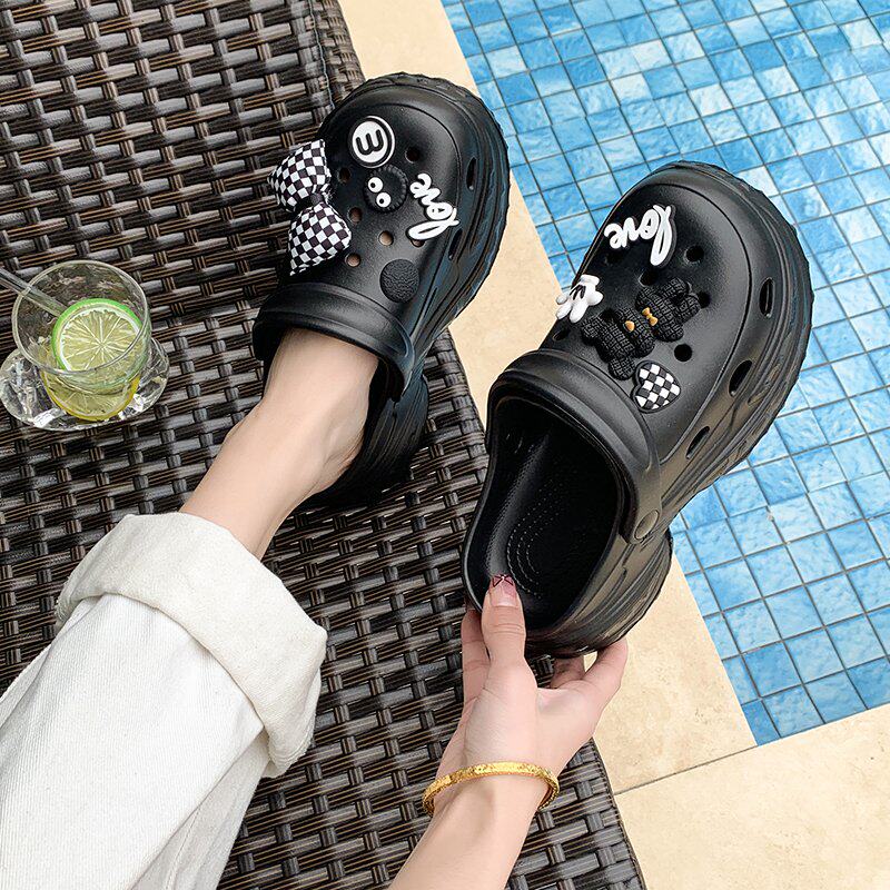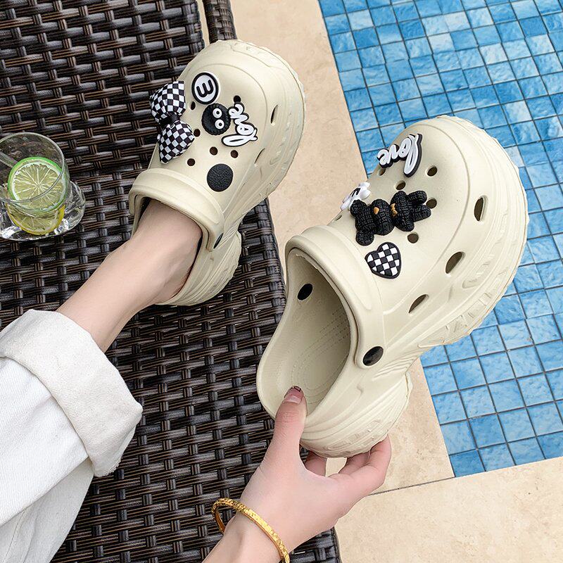 高级感时尚小熊洞洞鞋女夏季新款可外穿厚底增高防滑轻便两穿拖鞋