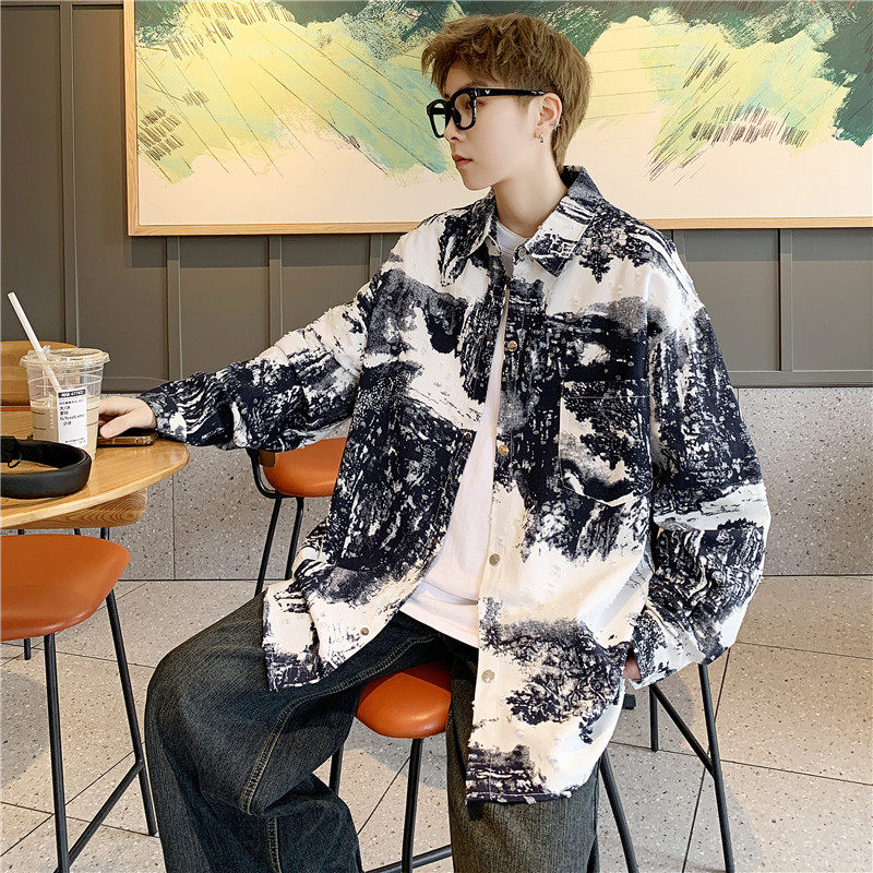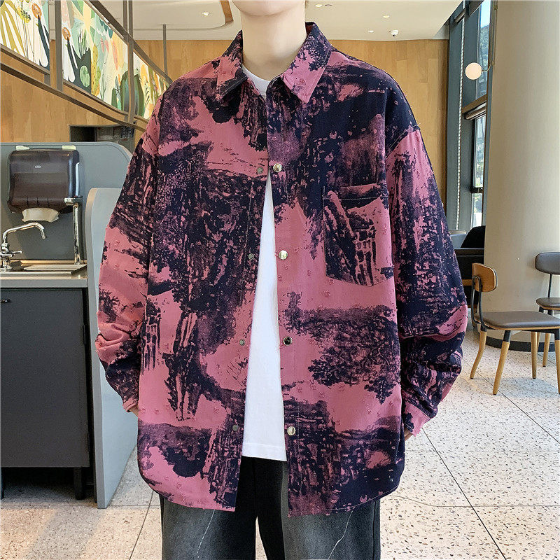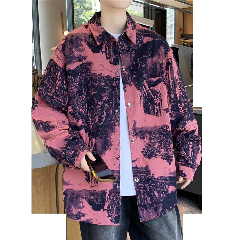 时尚中国风长袖衬衫男春秋季高级感痞帅扎染休闲外套男款纯棉衬衣