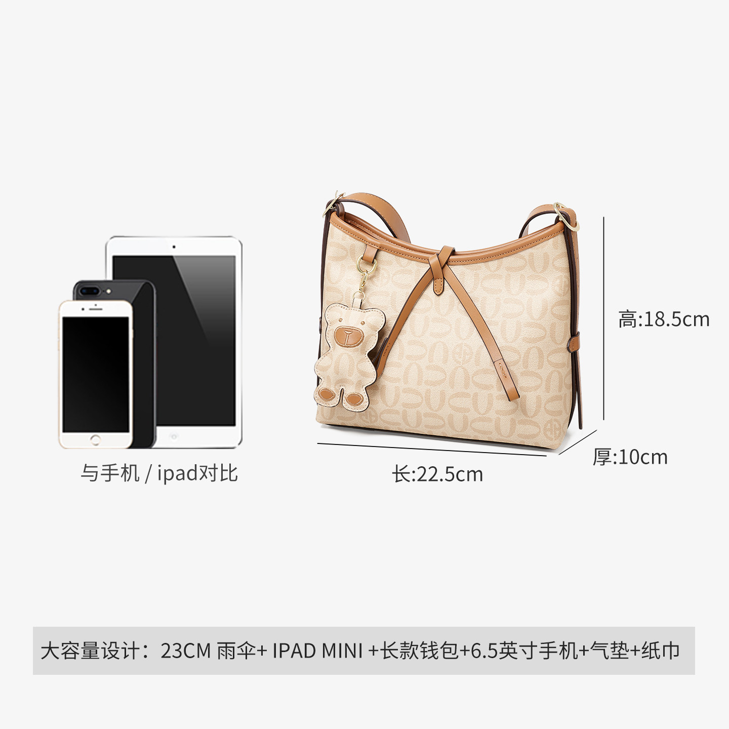 311线报网描述:质感PVC面料 趣味小熊挂饰 柔韧舒适肩带