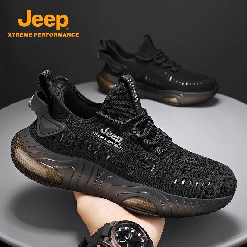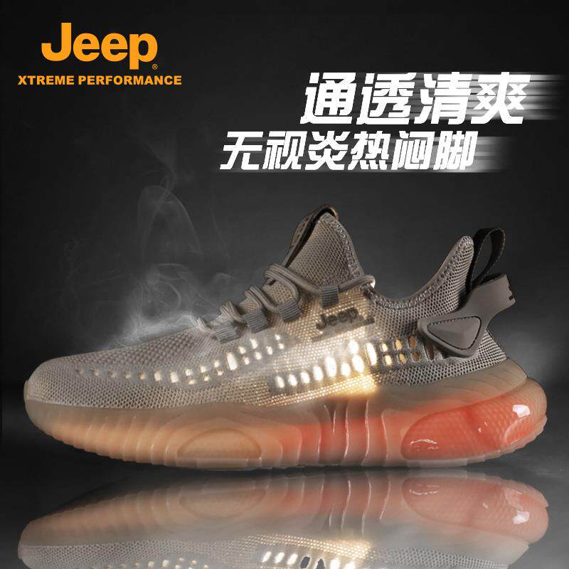 jeep吉普男鞋2026新款夏季透气飞织网面运动鞋子百搭黑色跑步潮鞋