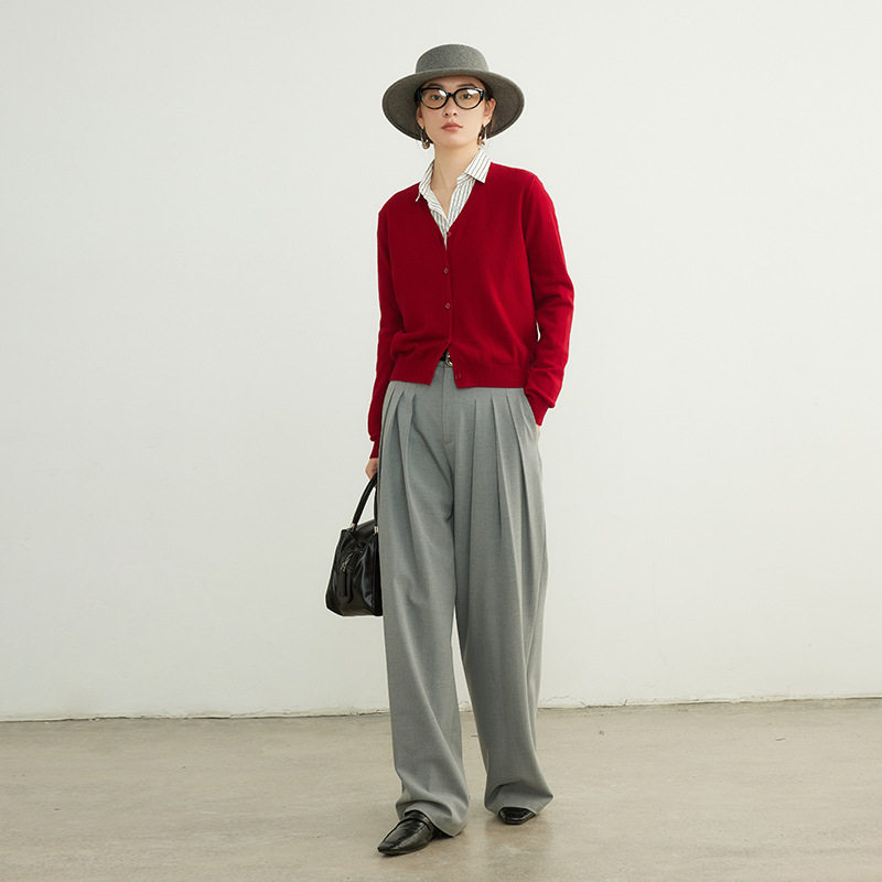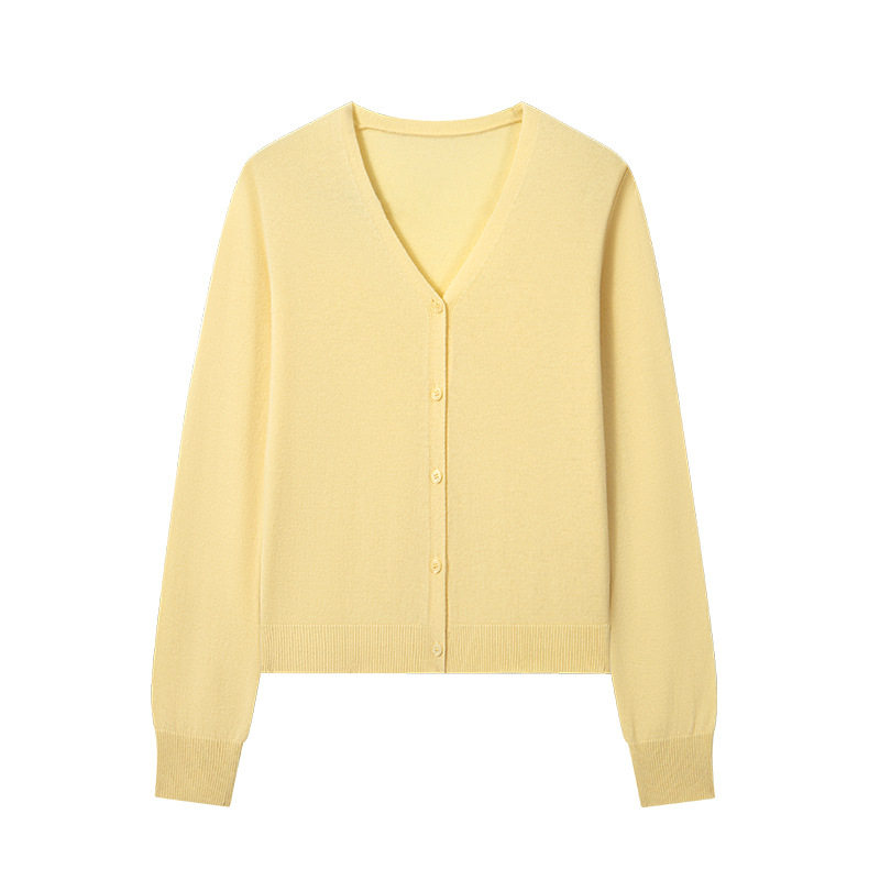 2026新款早春上衣美利奴纯羊毛开衫女装薄款外套V领针织衫毛衣女