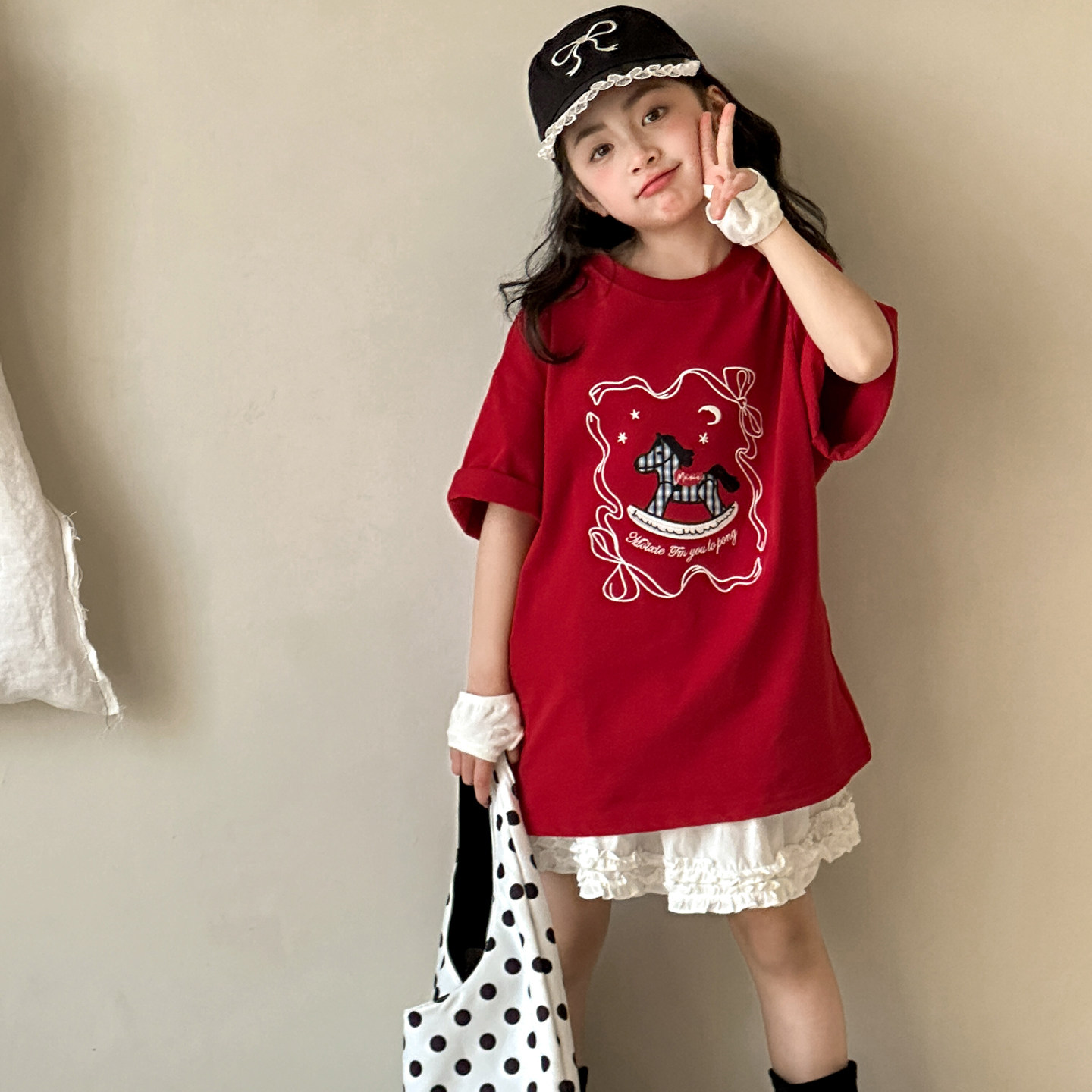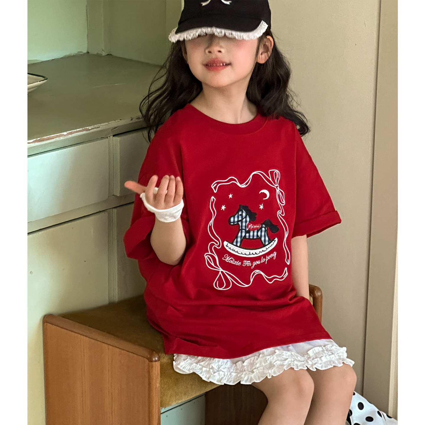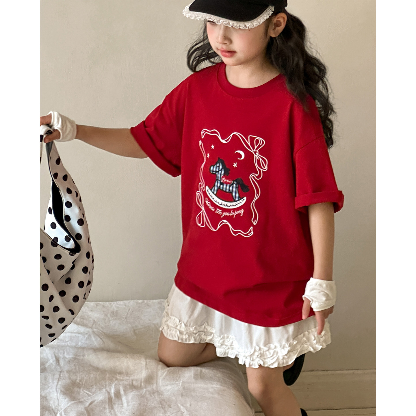 女童短袖T恤春秋2026新款女大童卡通打底衫初中生超好看春装上衣