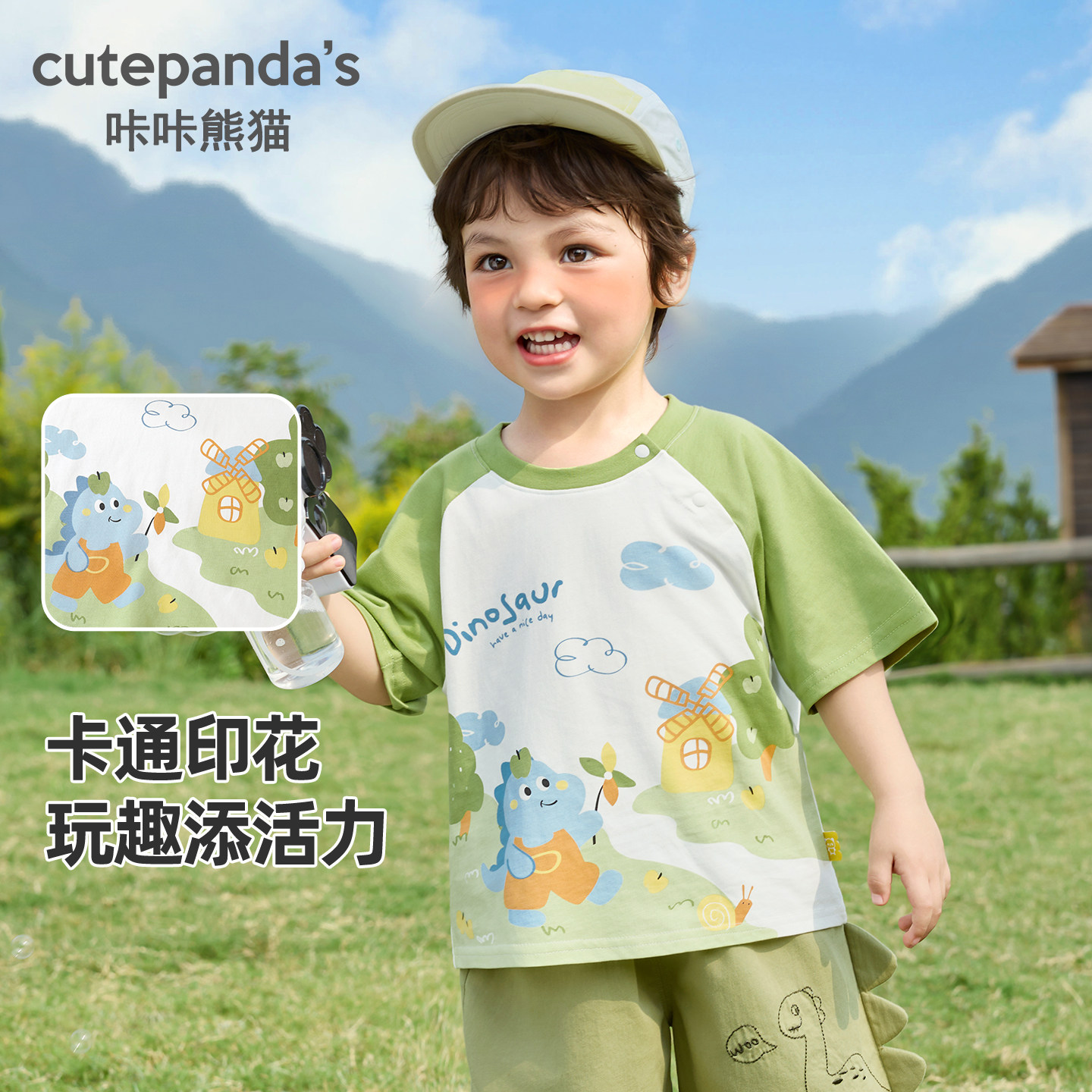 咔咔熊猫童装宝宝男童短袖T恤夏季儿童纯棉上衣女童可爱小童衣服