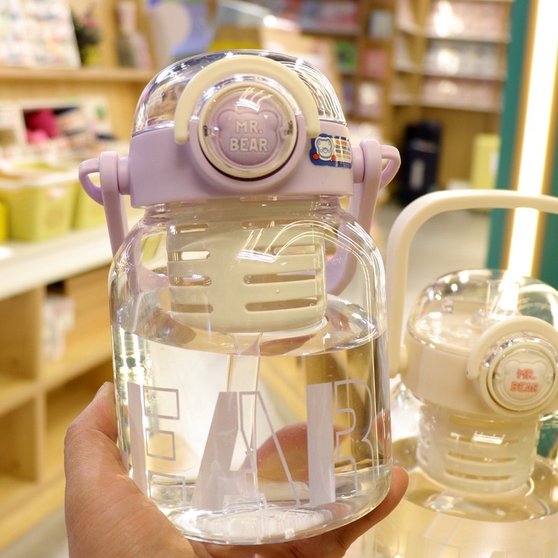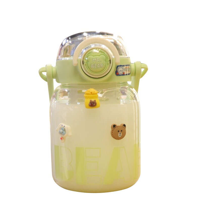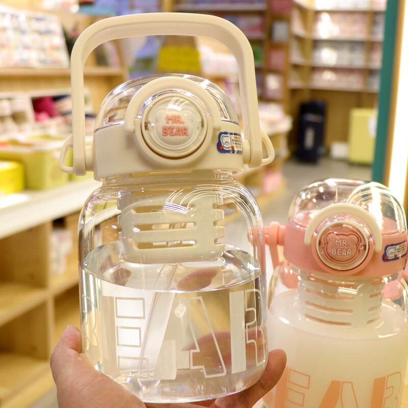 夏季大容量玻璃水杯手提便携式韩版女生高颜值带吸管水壶茶水分离