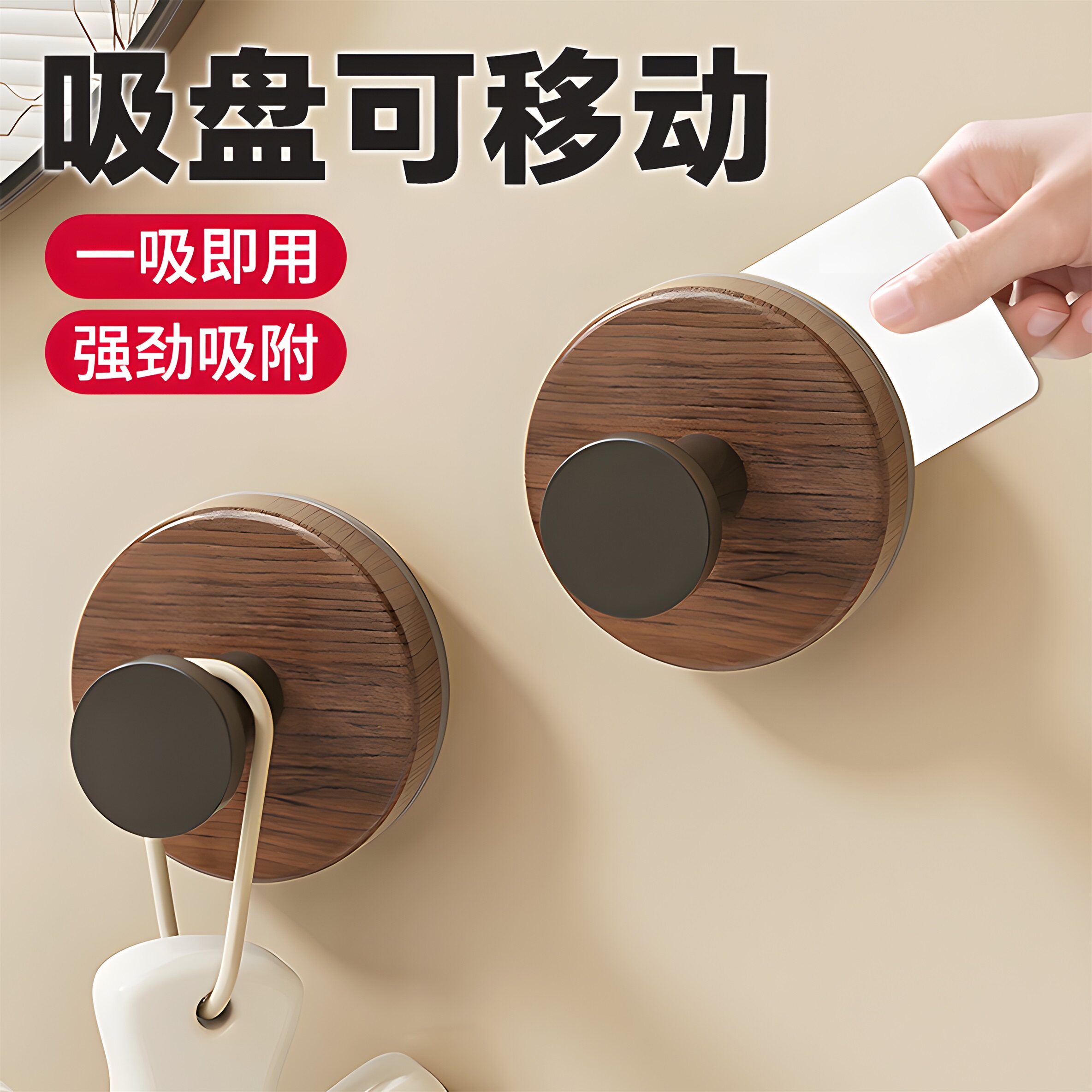 日本吸盘挂钩免打孔强力承重厨房真空无痕粘钩胡桃木浴室墙面粘胶