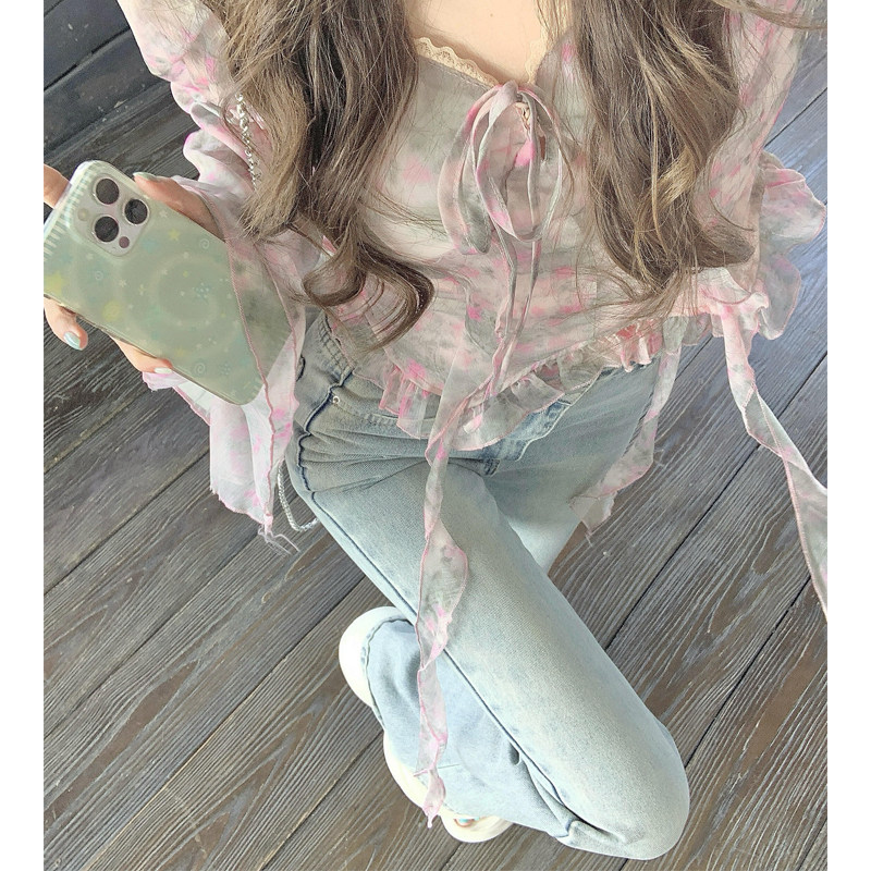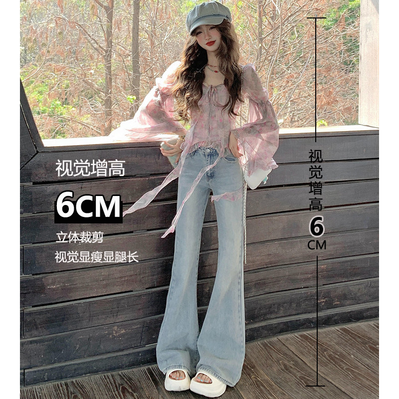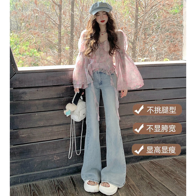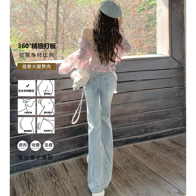 浅蓝色直筒微喇牛仔裤女2026春夏新款高腰显瘦修身不贴腿马蹄裤子