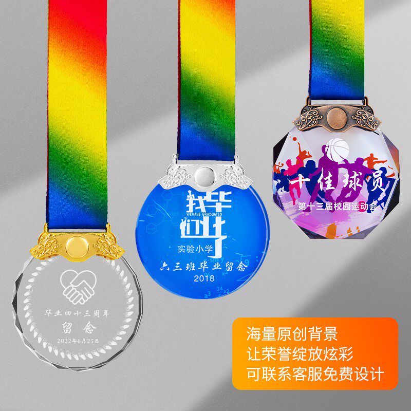 水晶小奖牌定制金银铜阅读之星运动会比赛毕业纪念品学生儿童奖杯