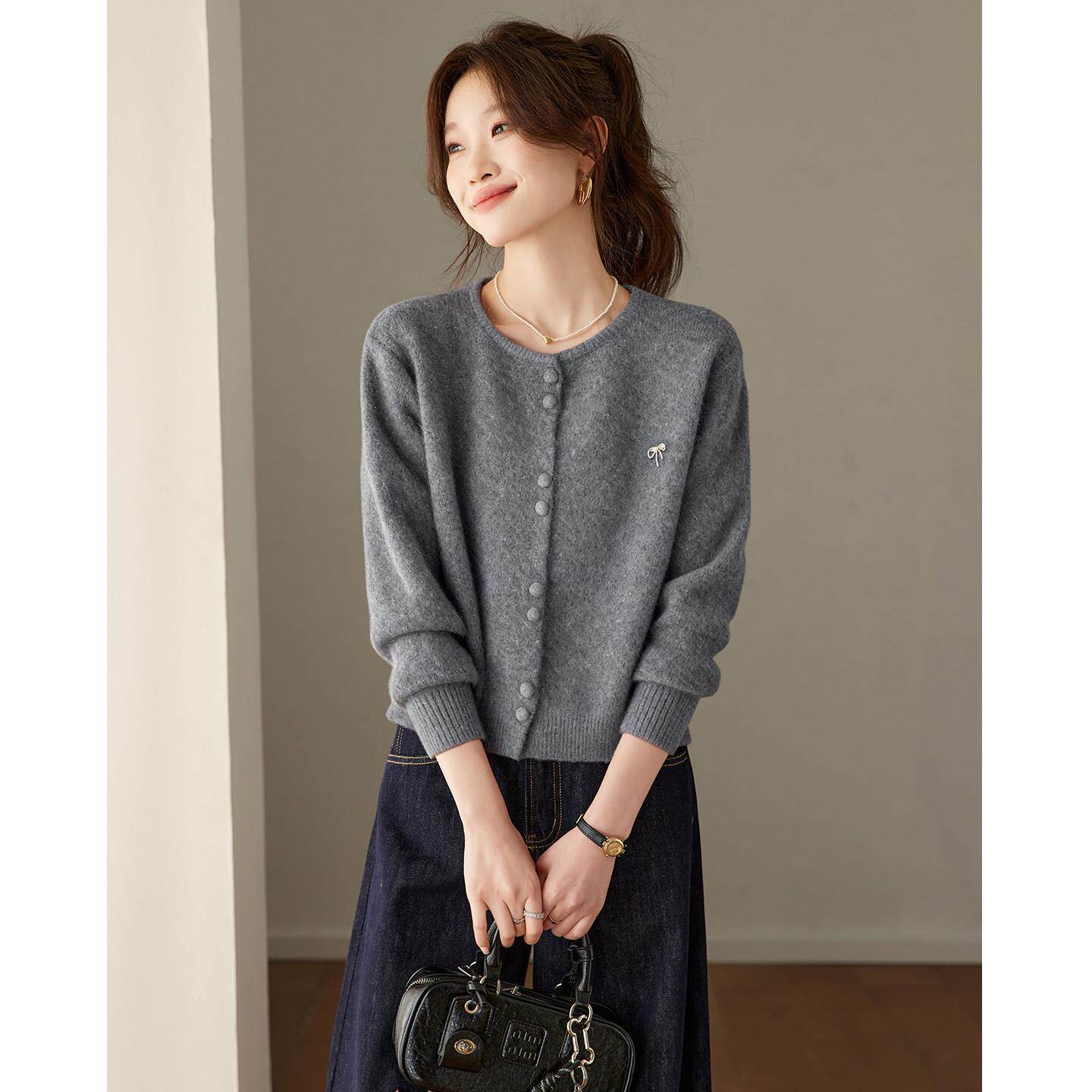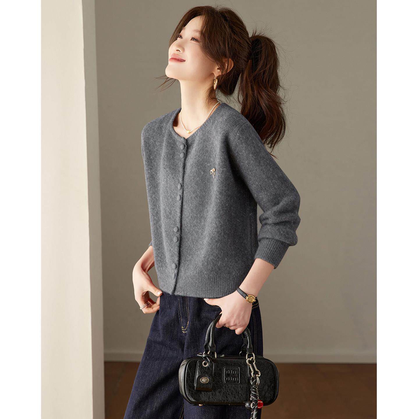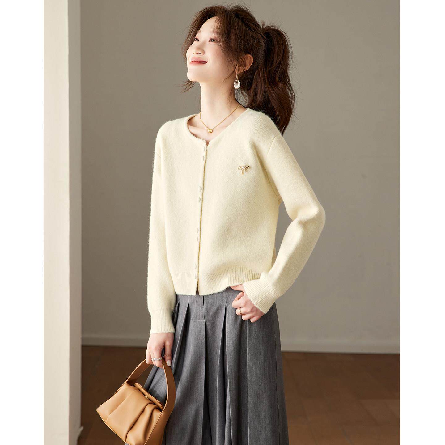 设计感2026早春新款圆领酒红色小开衫毛衣女时尚洋气时髦针织上衣