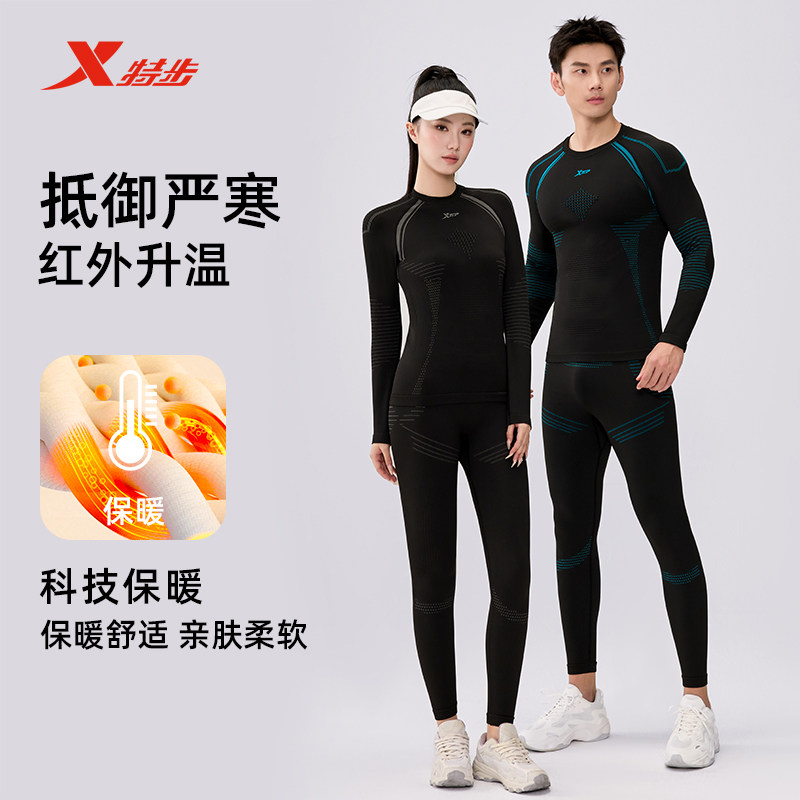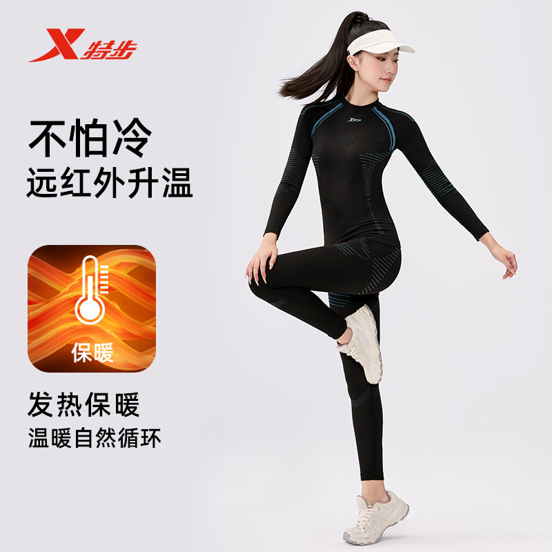 特步健身速干衣压缩男款户外跑步篮球紧身服运动保暖内衣套装女