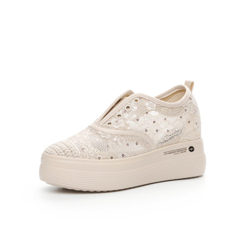 夏季内增高女鞋2024新款网面厚底小个子搭配裙子的鞋子乐福休闲鞋