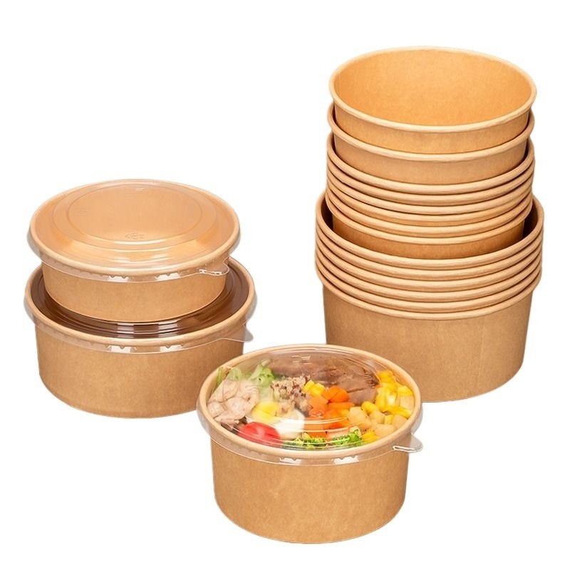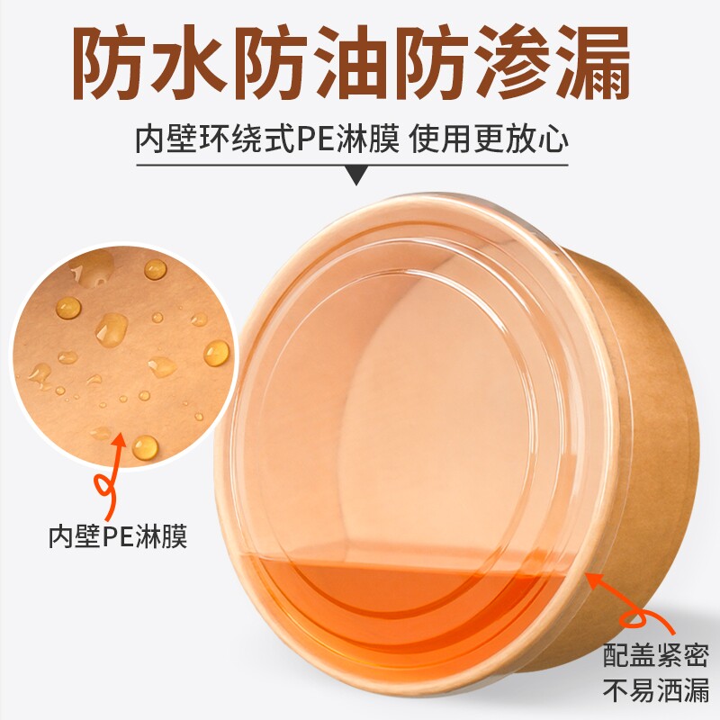 牛皮纸打包盒一次性纸碗饭碗野餐盒沙拉碗纸饭盒外卖快餐盒水果盒