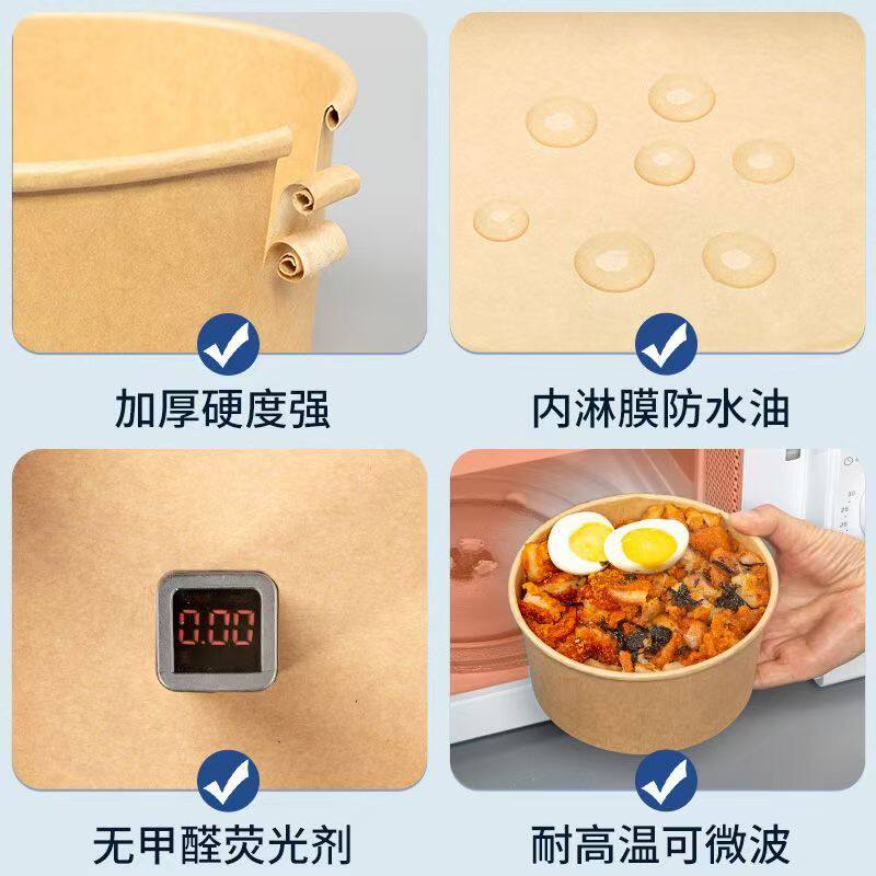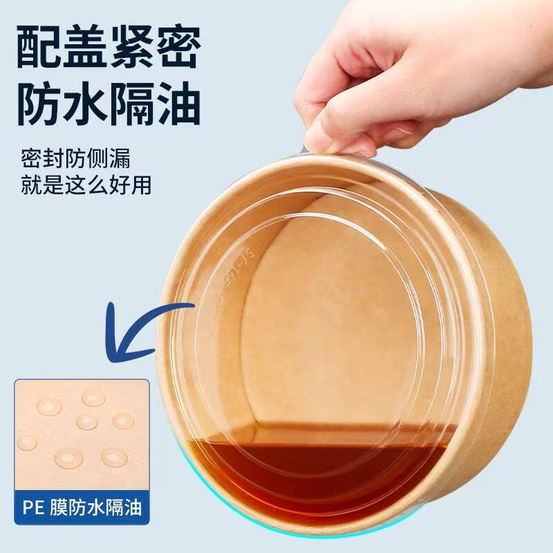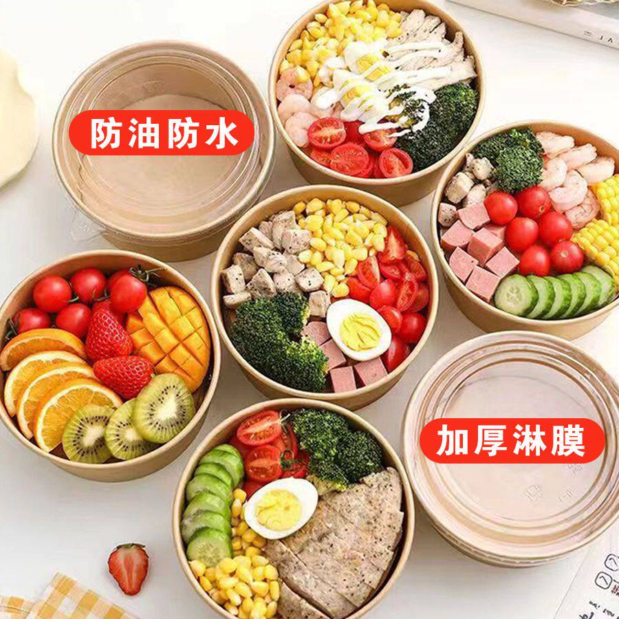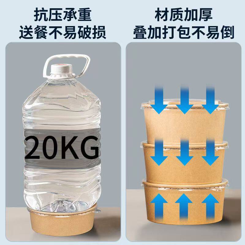 牛皮纸打包盒一次性纸碗饭盒沙拉碗外卖快餐盒果切盒加厚圆形带盖