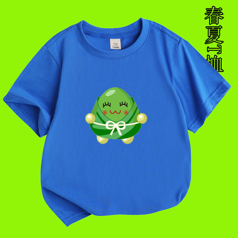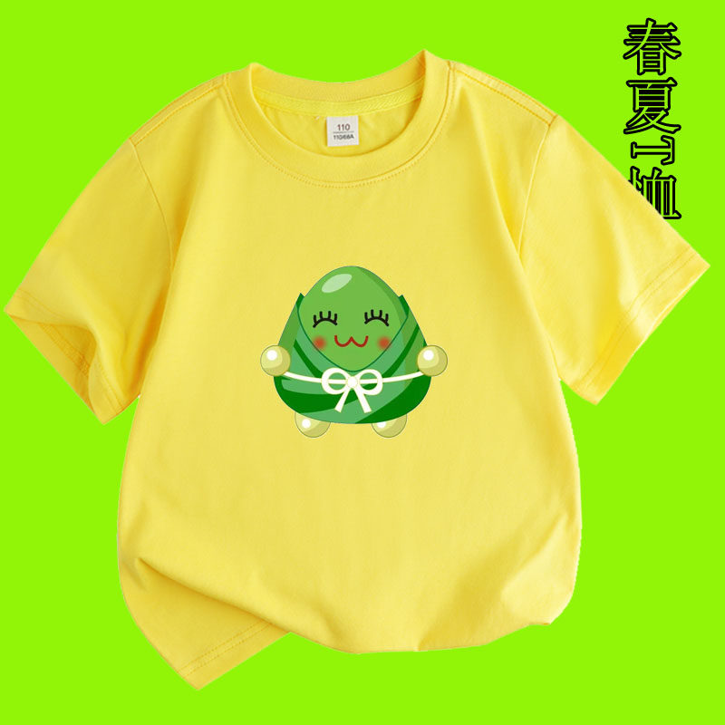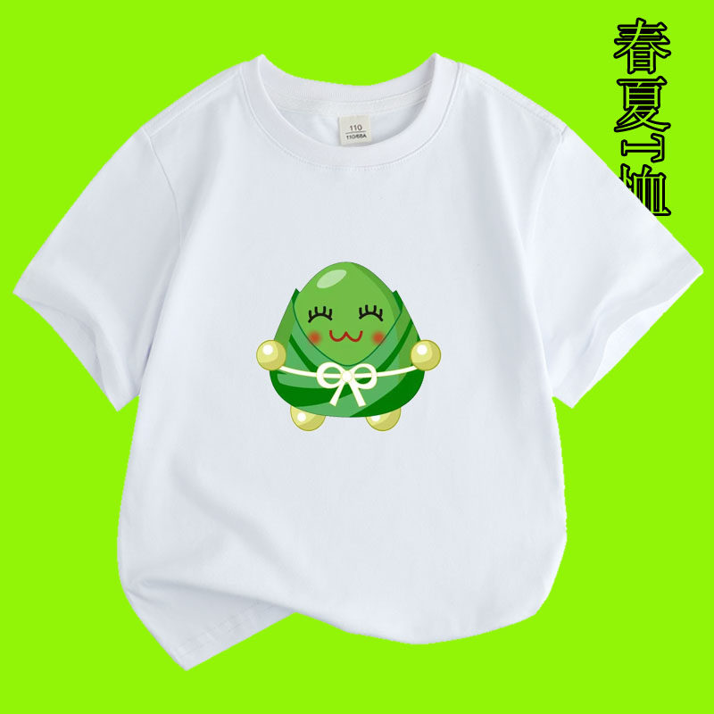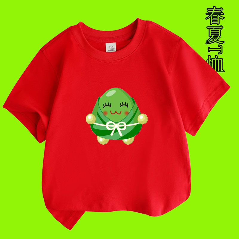 端午节粽子图案男女孩青少年夏季纯棉绿色短袖儿童装T恤衫亲子款