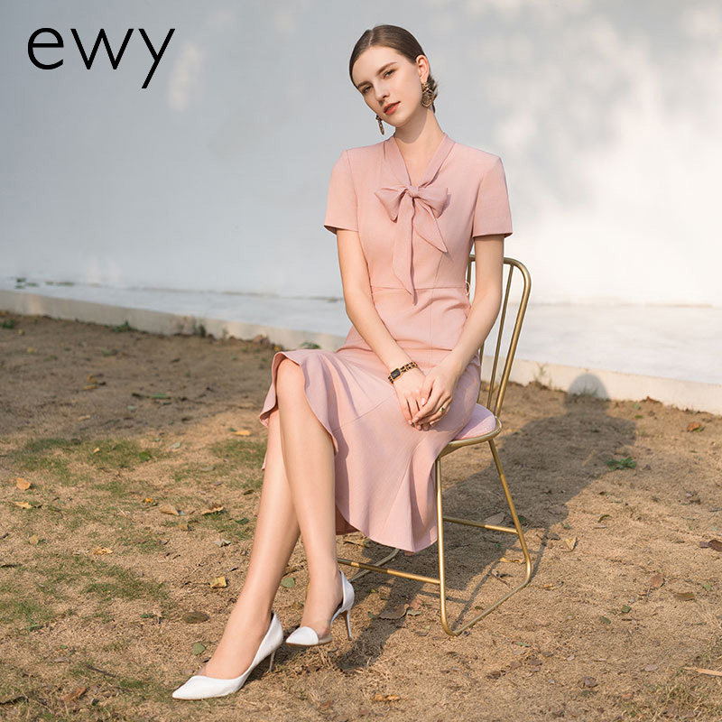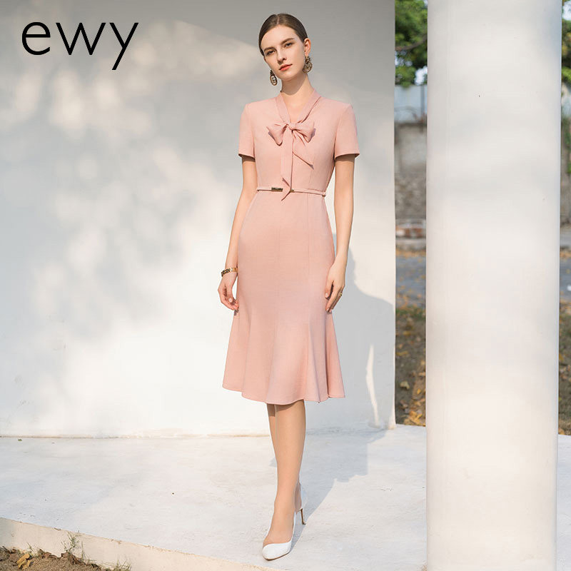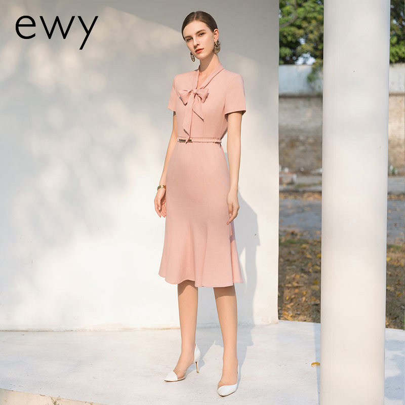 ewy温柔优雅粉色连衣裙女夏季短袖通勤上班裙子名媛风经理工作服