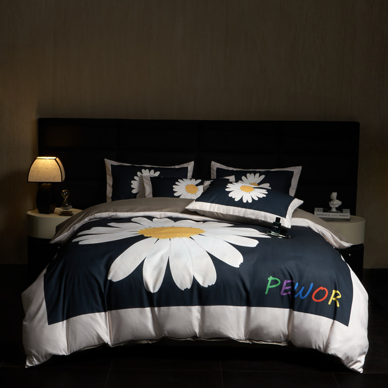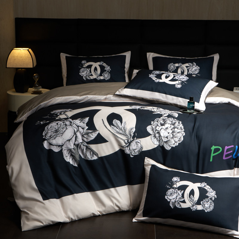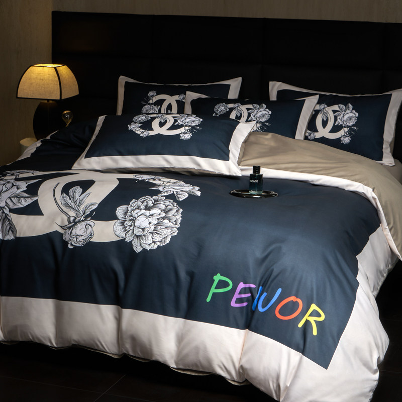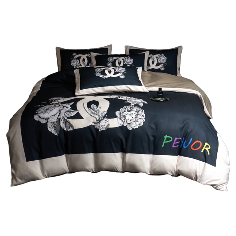 潮牌网红赫本风个性高级感男生黑色小香风纯棉床单被套全棉四件套