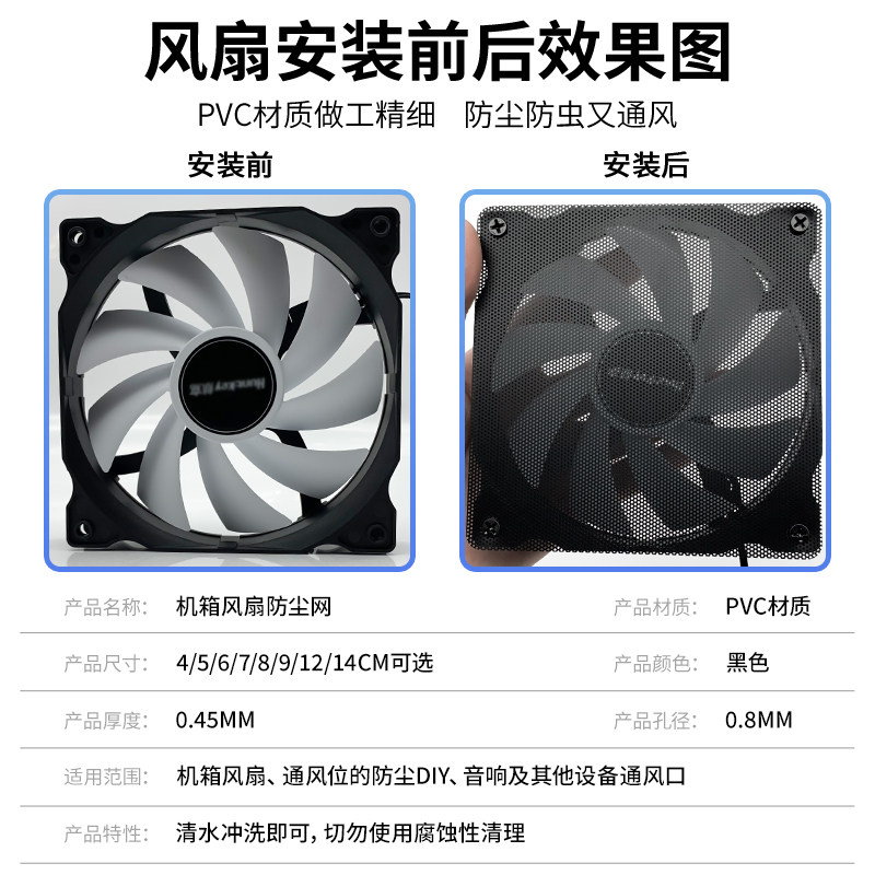 机箱风扇防尘网罩台式主机散热5/6/7/8/9/12/14cm过滤PVC网防护网