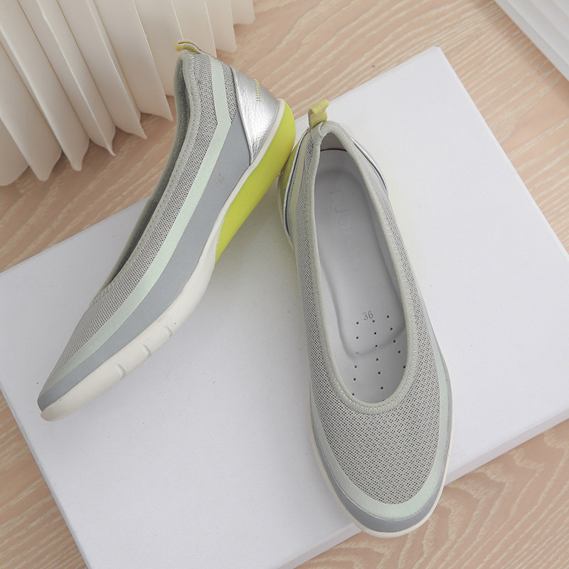 HUOGEN网面透气运动鞋女一脚蹬平底单鞋舒适优雅妈妈鞋软底旅游鞋