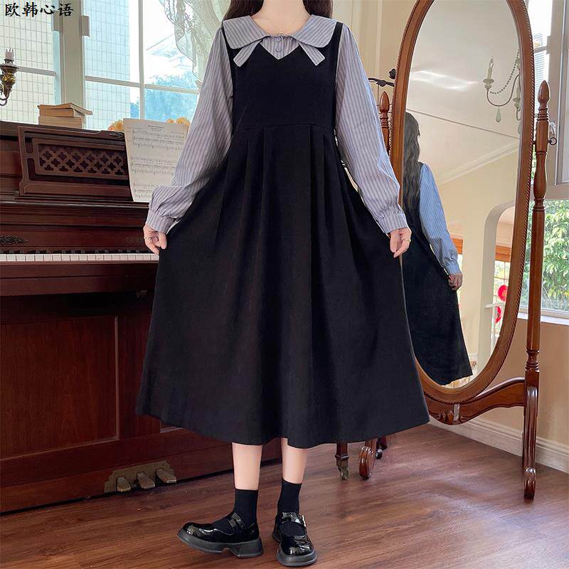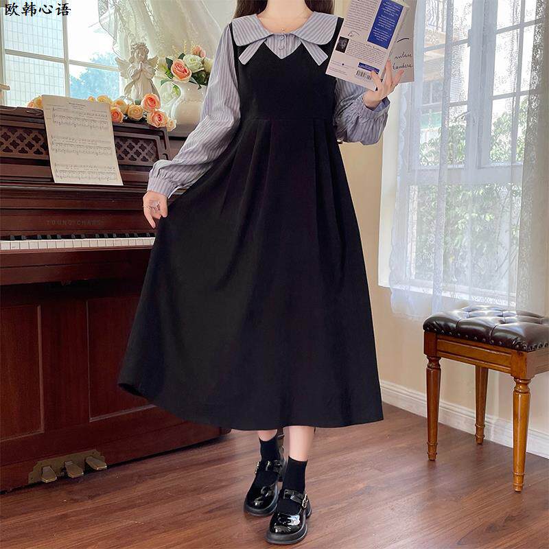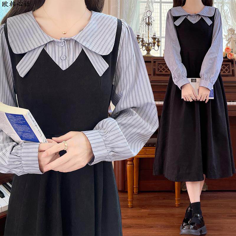假两件连衣裙少女春装2024新款初中高中学生甜美娃娃领学院风裙子