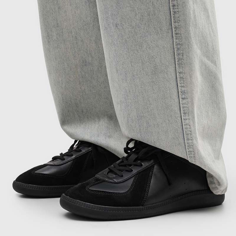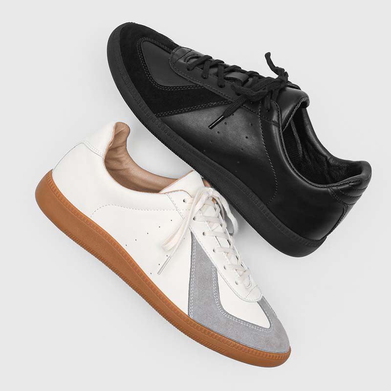 平底德训鞋男款真皮T头运动慢跑鞋极简训练鞋黑色增高通勤阿甘鞋