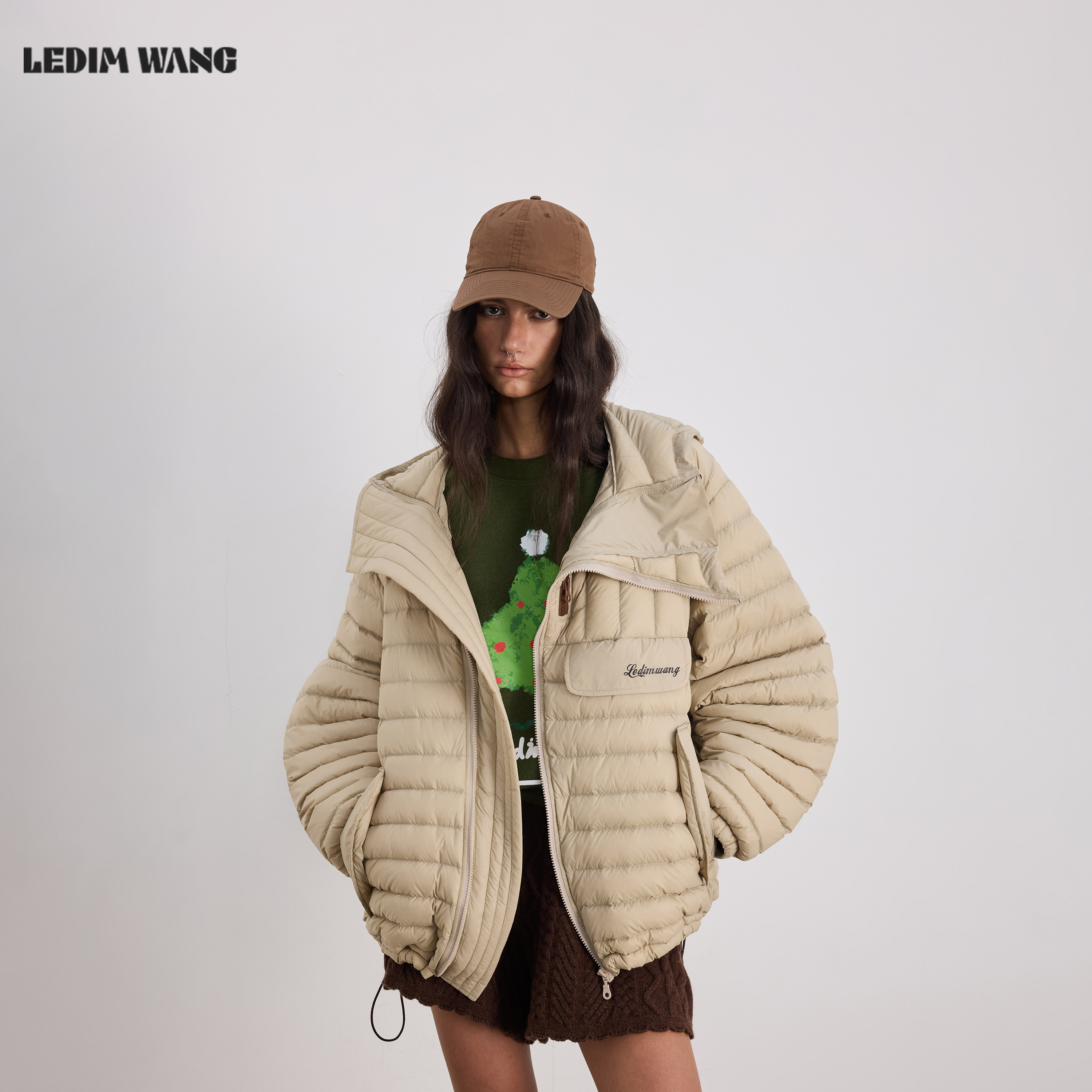 【明星同款】LEDIM WANG卡其色轻便鹅绒排骨羽绒服女外套25冬新款
