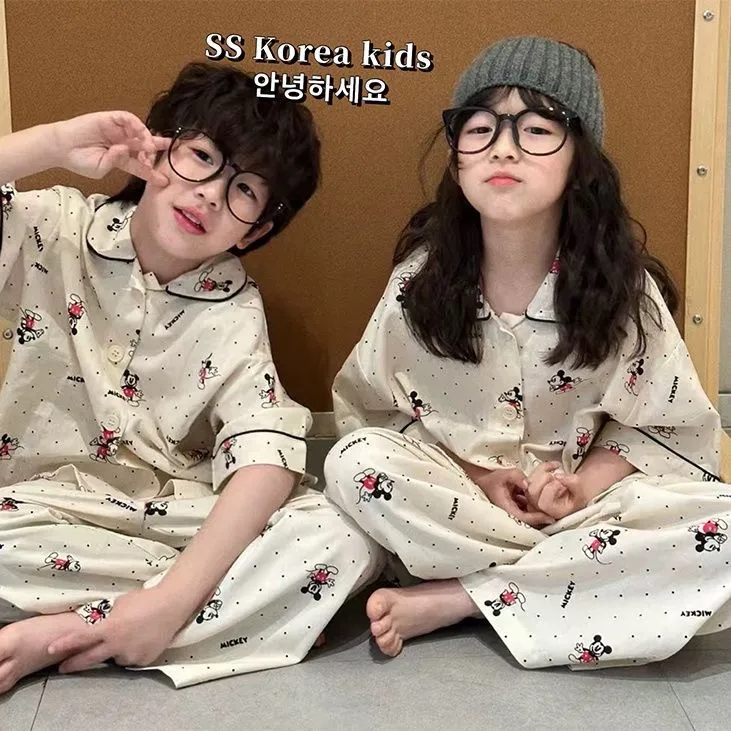 夏季儿童云朵棉短袖长裤睡衣男童薄款中大童女学生卡通男童家居服