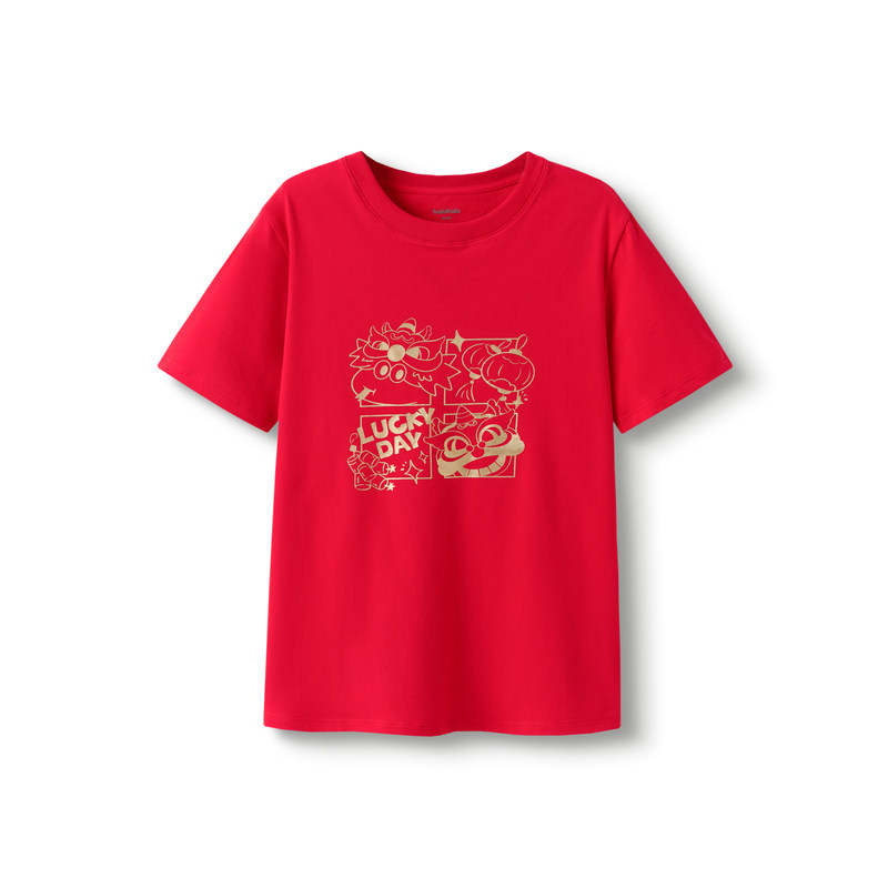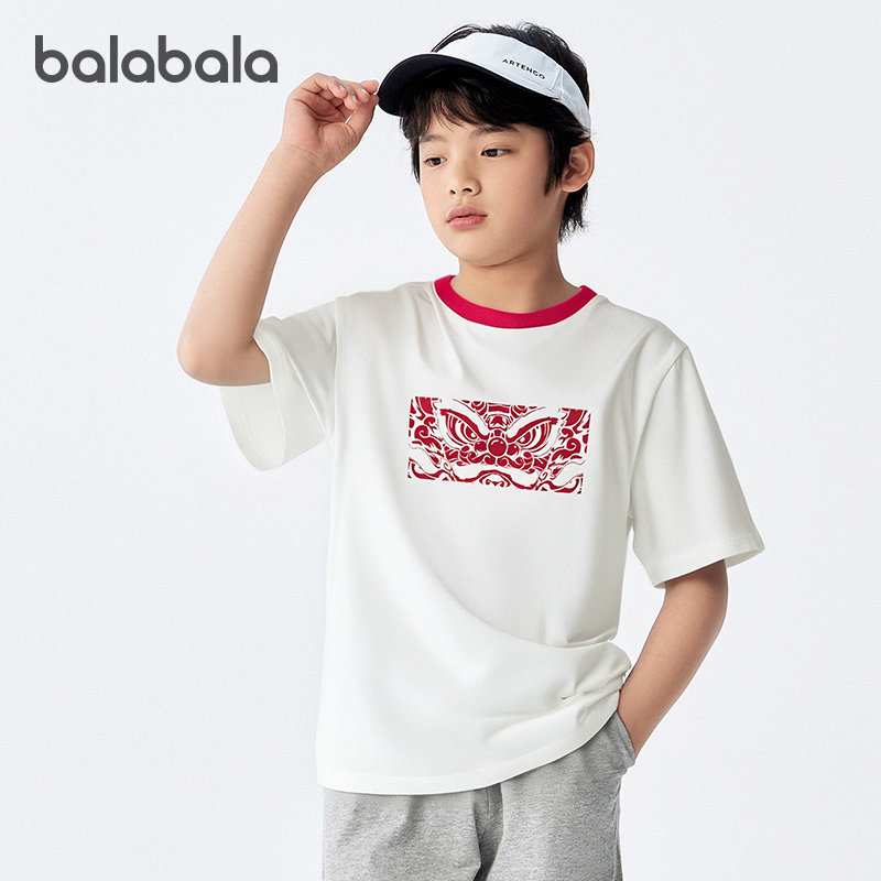 311线报网描述:福字与醒狮文化,新年氛围儿童短袖T
