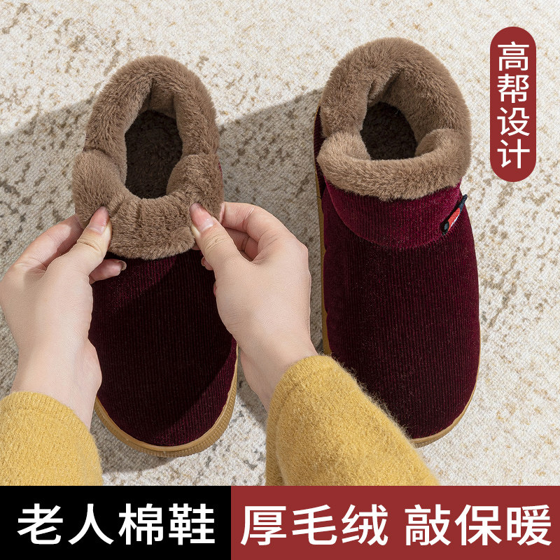 送爸妈长辈棉拖鞋女款冬季新款室内居家防滑加绒保暖可外穿棉鞋男