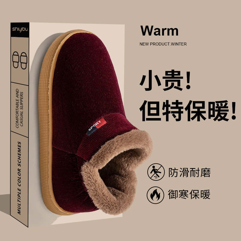 311线报网描述:冬季新款室内居家防滑加绒保暖可外穿棉拖鞋
