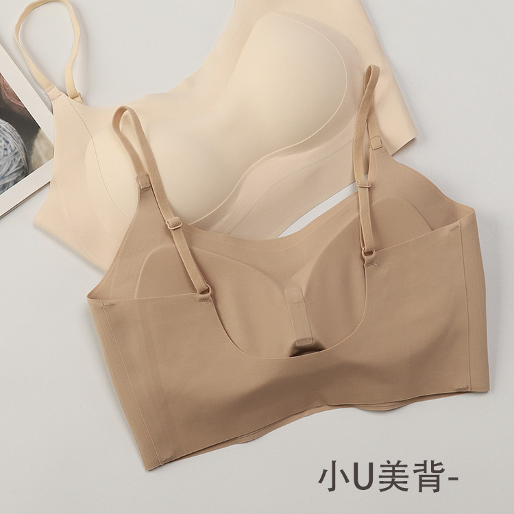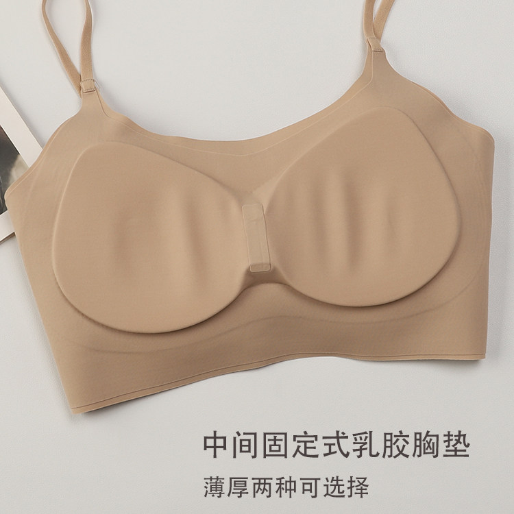 无痕美背吊带背心小胸加厚聚拢一体式固定杯乳胶文胸罩舒适内衣女
