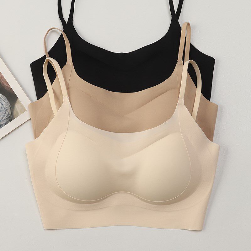 无痕美背吊带背心小胸加厚聚拢一体式固定杯乳胶文胸罩舒适内衣女