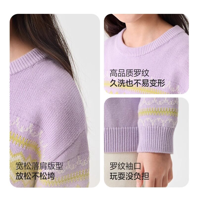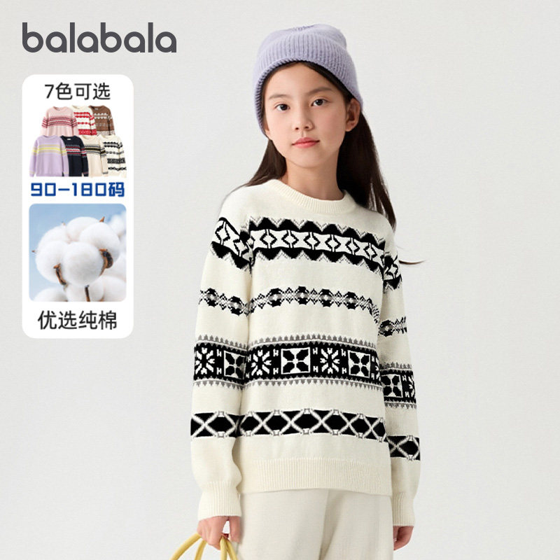 巴拉巴拉女童毛衣中大童费尔岛针织衫纯棉儿童打底衫秋冬款童装潮