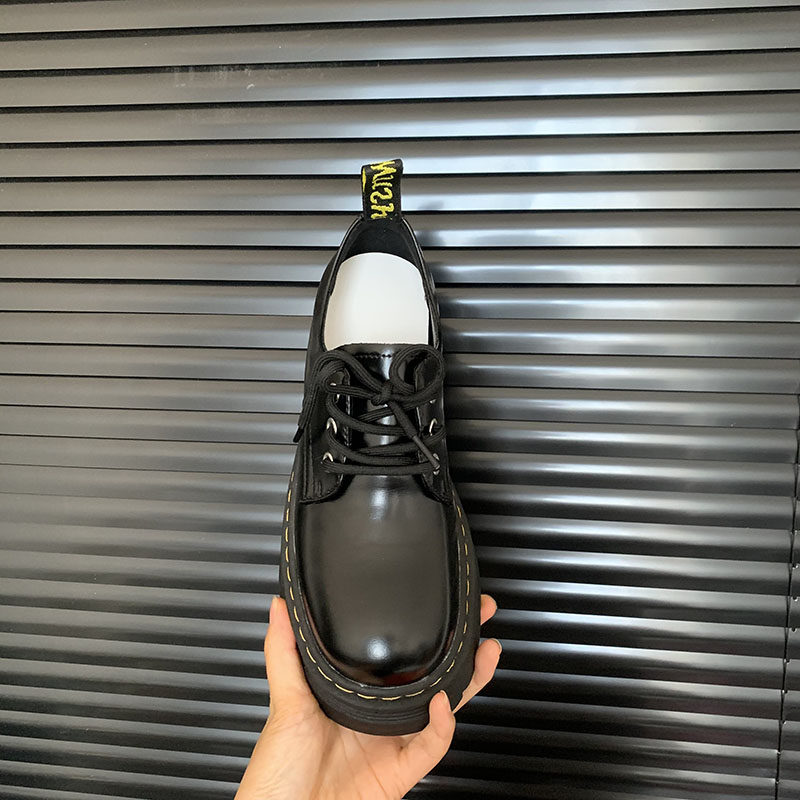 内增高女鞋8cm小个子小码单鞋女秋增高皮鞋女生百搭鞋 黑色厚底鞋
