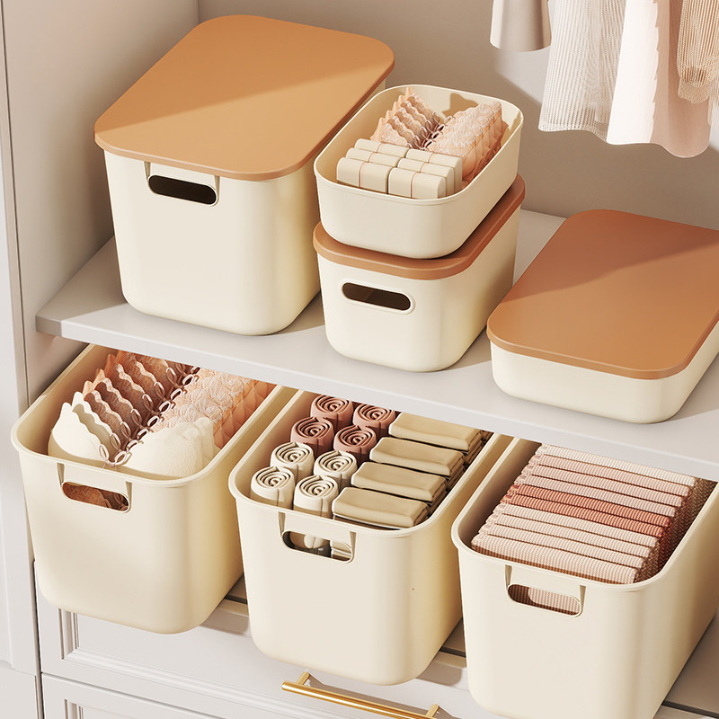 杂物收纳盒化妆品收纳筐家用加厚带盖储物盒桌面零食玩具收纳箱fh