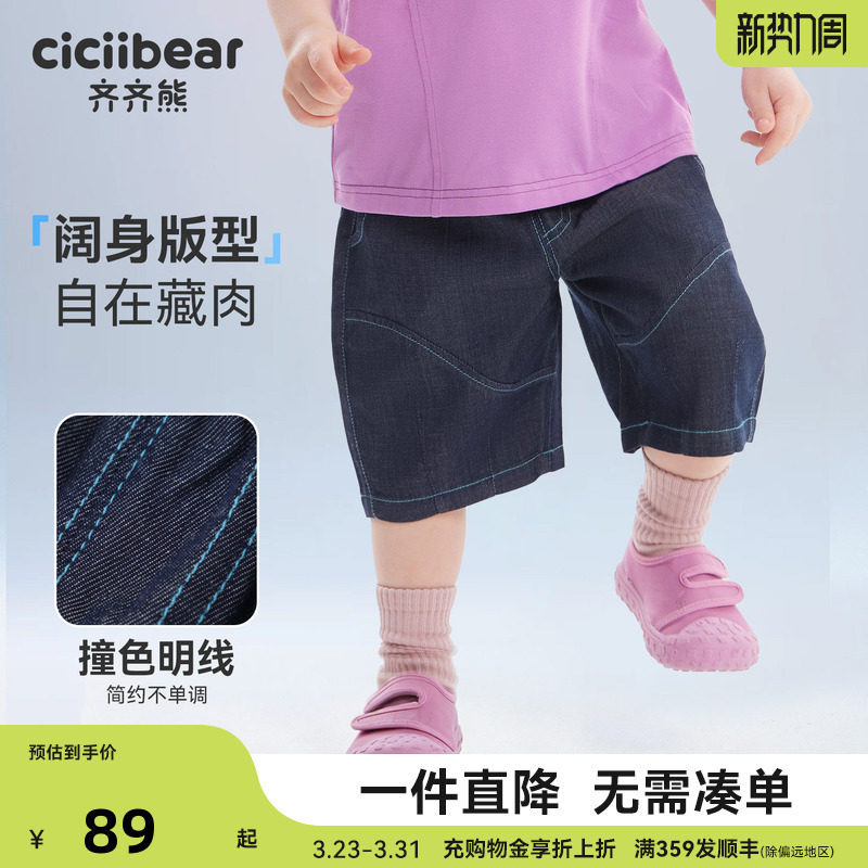 311线报网描述:齐齐熊儿童夏款吸湿透气牛仔短裤