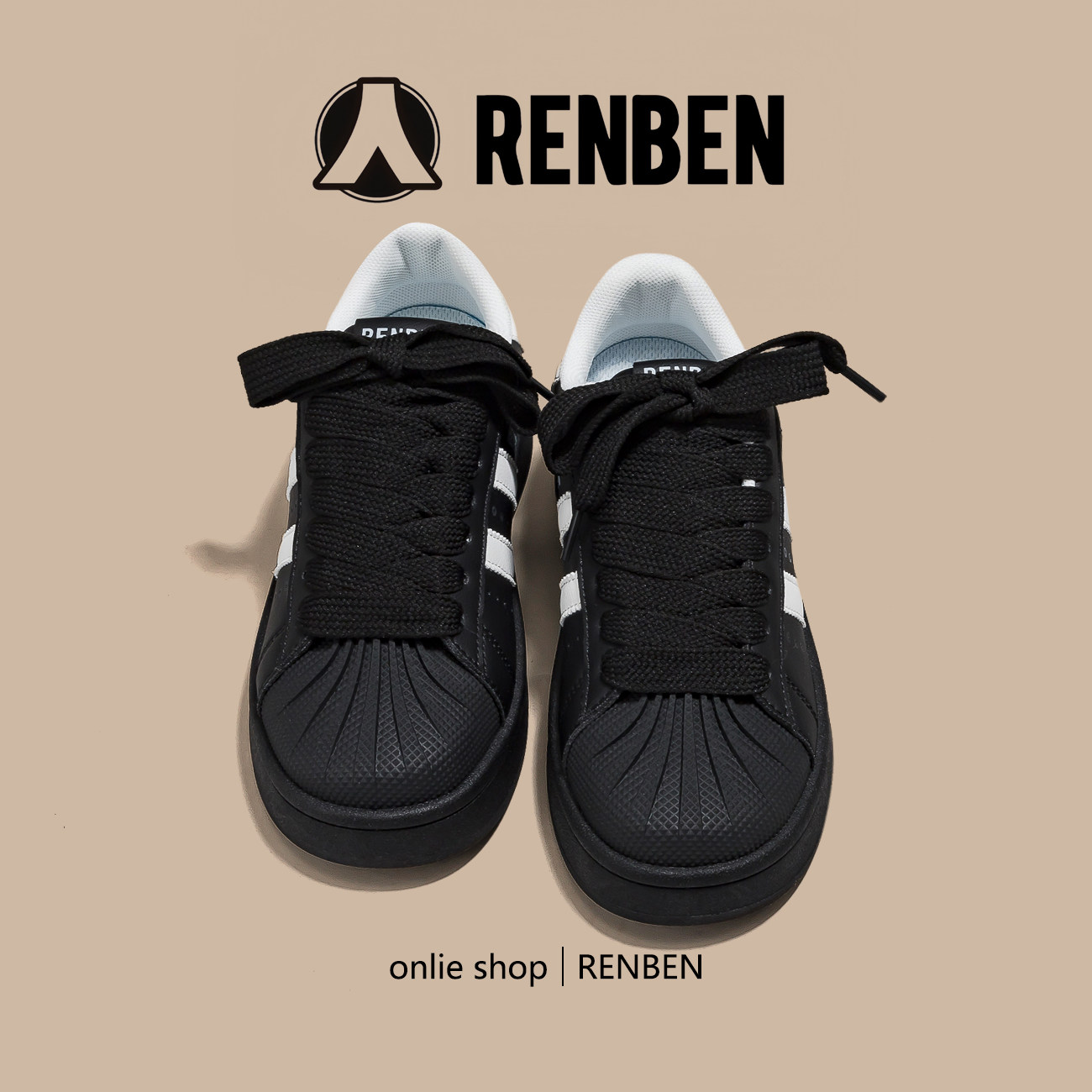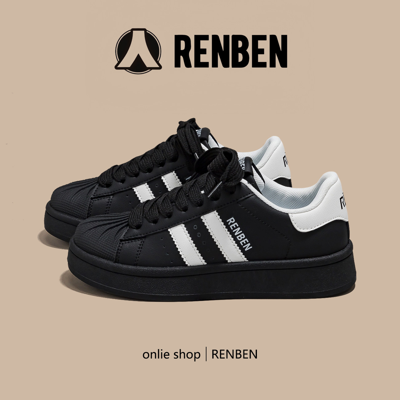 人本黑色贝壳头板鞋女款2026春季新款复古百搭小黑鞋厚底休闲鞋子