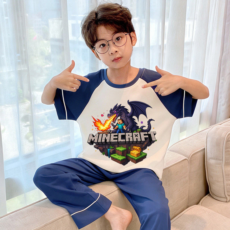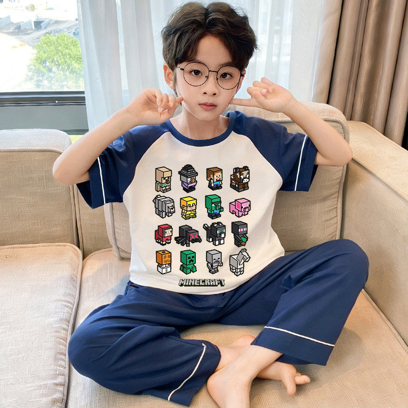 儿童睡衣男童春秋纯棉短袖长裤夏季薄款男孩中大童空调家居服套装