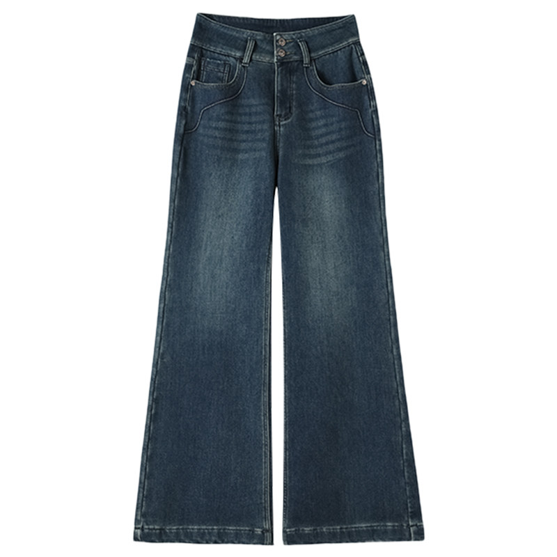 加绒牛仔裤女2026新款爆款冬季加厚小个子高腰直筒显瘦宽松阔腿裤