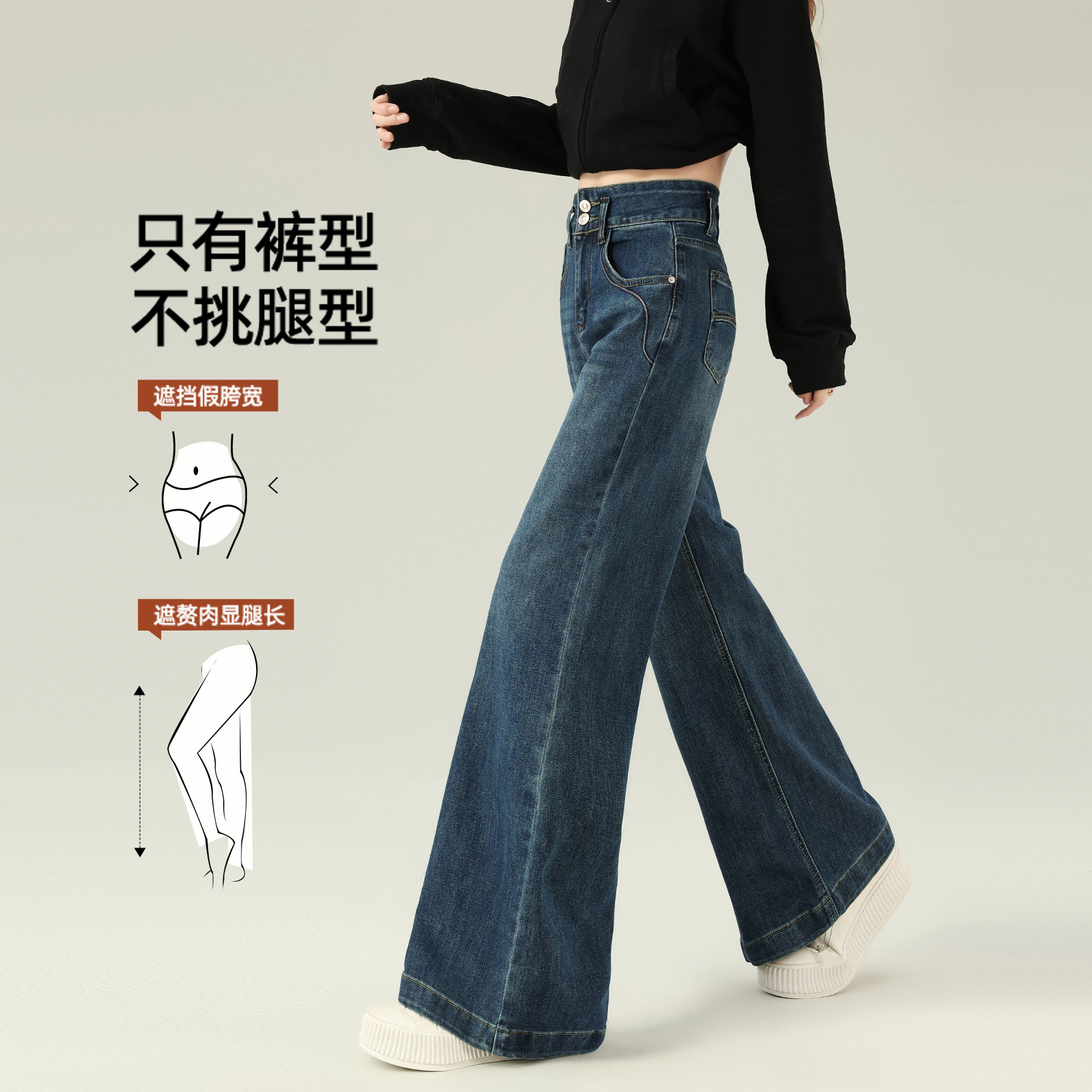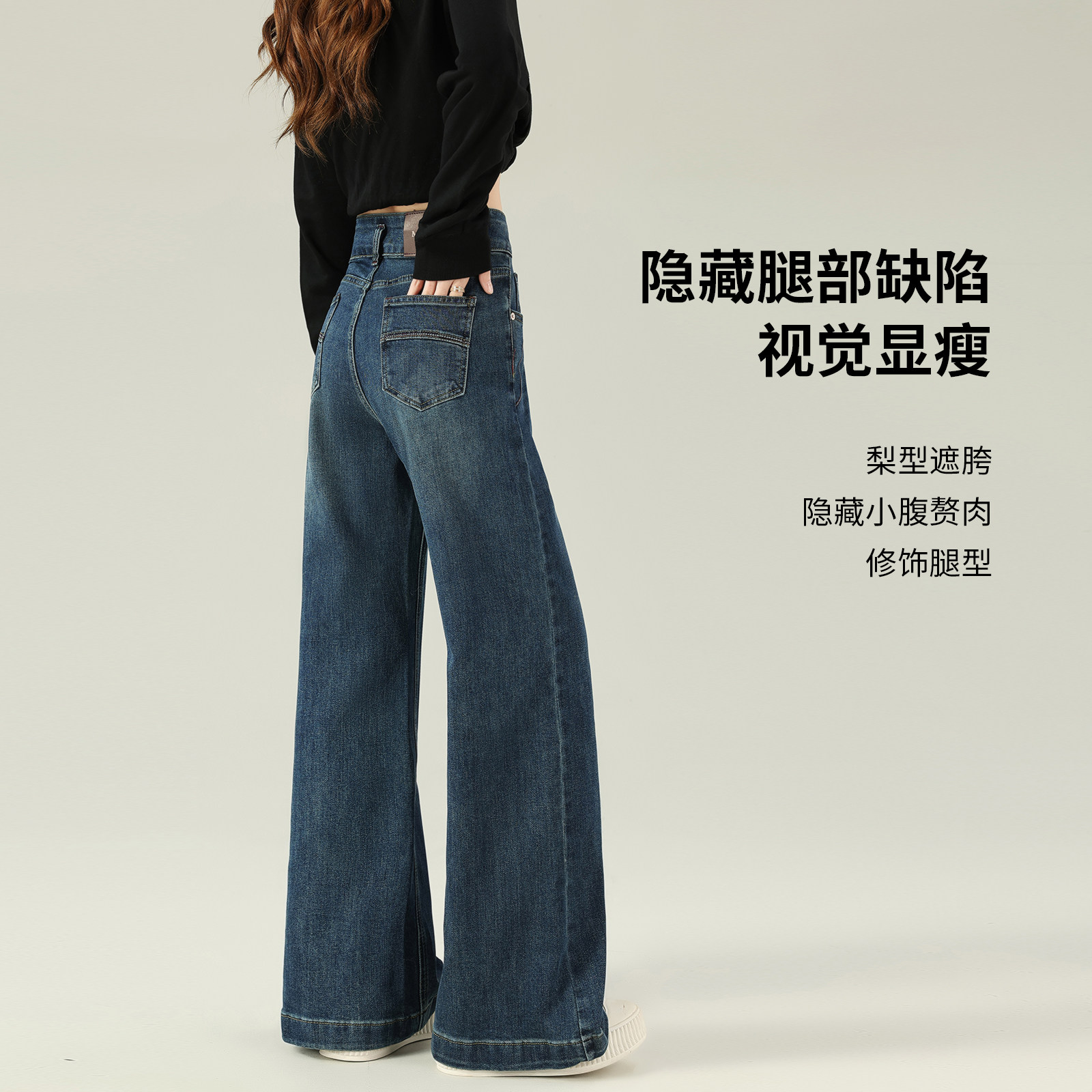 311线报网描述:牛仔裤阔腿宽松 梨型身材 阔腿牛仔裤 弹力