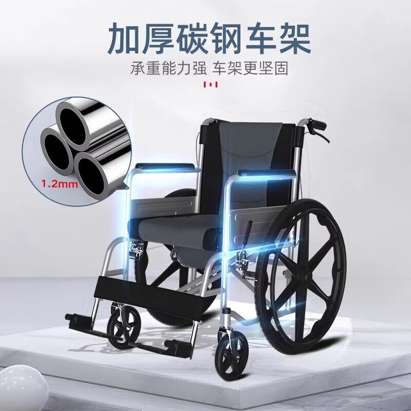 轮椅轻便折叠老人专用推车老年带坐便器移动马桶便盆上厕所大小便